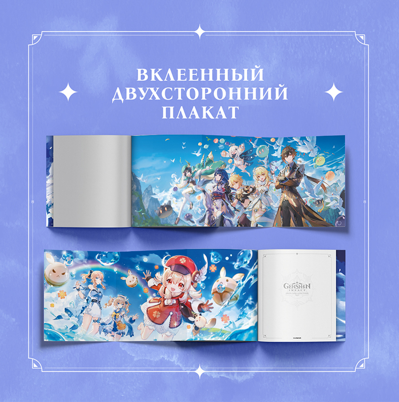 Отправляйтесь в путешествие по необычному миру Тейват, откройте для себя красоты Мондштадта и Ли Юэ в первом официальном артбуке игры Genshin Impact.