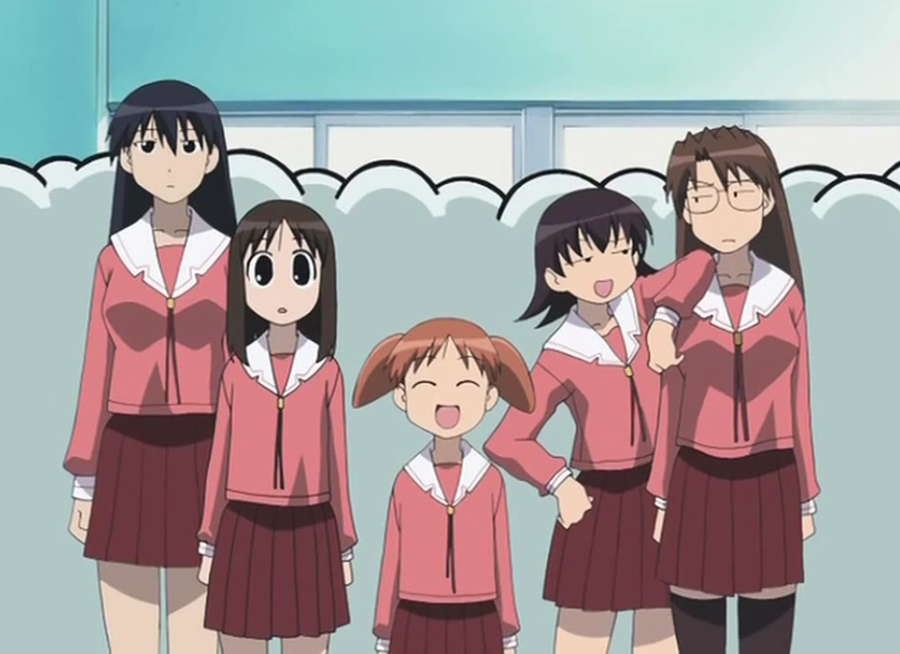 Azumanga Daioh Azumanga Daioh: The Animation あずまんが大王 Производство: Япония Жанр: комедия, школа Тип: ТВ (26 эпизодов), 24 мин. Трансляция: c 09.04.2002 по 01.10.2002 Режиссёр: Нисикиори Хироси Автор оригинала: Адзума Киёхико © Алексей Фадеев, 2004.04.15 На этот раз обойдусь без длинных прелюдий, мое эссе будет восторженное и радостное, так что ненавистникам всего милого и пушистого просьба не беспокоиться и дальше не читать. «Адзуманга» — кавайный шедевр. Однозначно. Порой меня обвиняют в предвзятом отношении к «кавайным» сериалам. Так вот, подобные обвинения абсолютно беспочвенны. Единственное, к чему у меня всегда было и будет предвзятое отношение, так это к наигранности и искусственности, а также к тому, что на мне, как на зрителе, пытаются заработать. Однако предвзято относиться к целому жанру или стилю нет никакой необходимости. Гениальнейшая «Адзуманга» — лишнее тому подтверждение. Это произведение — одно из тех, что с каждой новой серией все больше влюбляют в себя зрителя, а показав последний эпизод, заставляют высовываться в форточку и орать прохожим всякие глупости. Сейчас, когда последняя серия подошла к концу, очень трудно сказать что-то внятное и понятное об этом сериале. Обычно при просмотре всякой фигни слова так и просятся быть набранными на клавиатуре, в случае же с «Адзумангой» они прячутся между клавишами. Спросите меня, что такое «Адзуманга», и в ответ я буду глупо улыбаться, строить на пальцах нелепые комбинации и по-дурацки хихикать, однако вам не удастся добиться от меня каких-либо колких эпитетов и умных суждений. Пытаться умно рассуждать о сюжете «Адзуманги» — верный признак психической болезни. Совсем недавно, по стечению неких обстоятельств, мне пришлось посмотреть «кламповский» сериал «Ангельский слой», и тогда мой восторг был неописуем. Переставляя один эпизод «Адзуманги» за другим, в голове постоянно возникали образы милого и доброго «Ангельского слоя». Кстати, почитав опусы других рецензентов, выяснилось, что не только у меня возникали эти образы. На поверку же оказалось, что и тот и этот сериал режиссировал один и тот же человек — Нисикори Хироси, мастер кавайного действа, и вообще дядя с большой фантазией, в чем мне лишний раз пришлось убедиться. Свой новый проект Нисикори-сан писал не с чистого листа. Он и его сценарист Окоти-сан взяли за основу знаменитую мангу Адзумы Киёхико. Экранизированная история Адзумы получилась довольно объемной и заняла аж 26 эпизодов, но как же легко эти эпизоды смотрятся и усваиваются! Весь успех «Адзуманги», как мне показалось, заключается в полной отдаче автора своим персонажам. Мангака не стал париться каким-то глубокомысленным анализом бытия, не стал придумывать сложные сюжетные линии, ему это все было не нужно. И он, что удивительно, оказался полностью прав. До просмотра «Адзуманги» я не поверил бы, что можно отснять успешный и, что самое главное, длинный сериал, не используя сюжет вовсе. Ведь даже в «Тёбитах» и «Хине» имелось логическое стремление к завершению — поступление главного героя в вуз, попытки обрести взаимную любовь. Но что можно показать зрителю, не имея завязки, развертки действия, традиционной кульминации и развязки? Я не понимал. Оказалось, что очень многое. «Адзуманга» — это мое первое успешное знакомство с такого рода фильмами. Не имея какого-либо линейного сюжета, Адзума все вр