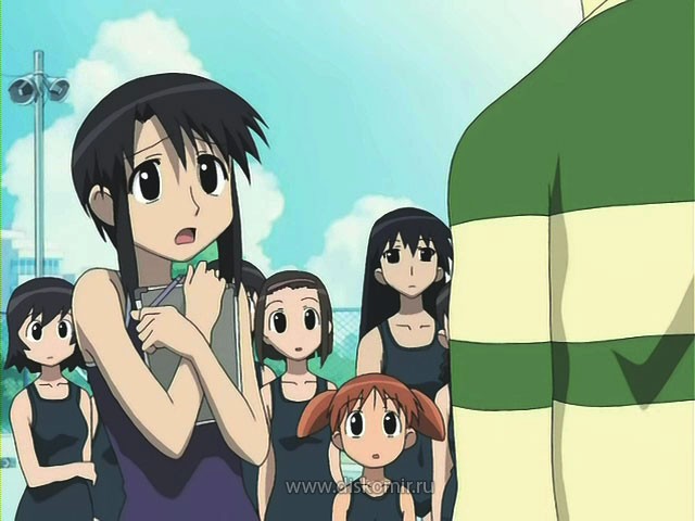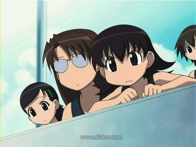 Azumanga Daioh Azumanga Daioh: The Animation Azumanga Daiou あずまんが大王 Производство: Япония Жанр: комедия, школа Тип: ТВ (26 эп.), 24 мин. Трансляция: c 09.04.2002 по 01.10.2002 Выпуск в 01:25 [ночной сеанс] на TV Tokyo Режиссёр: Нисикиори Хироси Снято по манге: Адзуманга Дайо Автор оригинала: Адзума Киёхико Описание: Основной сюжетной линией аниме является описание обычной жизни в японской старшей школе в течение трёх полных учебных лет до окончания школы. Главные герои — шесть школьниц и два учителя. Кроме них присутствует некоторое количество второстепенных персонажей, включая немного ненормального учителя и девушку, платонически влюблённую в Сакаки (одну из главных героинь). Зрители наблюдают навязчивое влечение Сакаки к соседским кошкам, жизнь девочки-вундеркинда Чио-чан в старшей школе, терпеливость Ёми к выходкам своей подруги Томо. Они узнают обо всём, что составляет жизнь обычных японских школьников: о летних каникулах, праздниках, экзаменах, спортивных мероприятиях, отношениях в классе и с учителями. Эти события и мероприятия показаны трижды, но герои становятся старше на год и поэтому они воспринимаются уже по-другому. Хотя в основном описывается каждодневная жизнь, иногда повествование неожиданно разбавляется вспышками сюрреализма и абсурда, например, в изображении новогодних снов героинь. Обзор: © Алексей Фадеев, 2004.04.15 На этот раз обойдусь без длинных прелюдий, мое эссе будет восторженное и радостное, так что ненавистникам всего милого и пушистого просьба не беспокоиться и дальше не читать. «Адзуманга» — кавайный шедевр. Однозначно. Порой меня обвиняют в предвзятом отношении к «кавайным» сериалам. Так вот, подобные обвинения абсолютно беспочвенны. Единственное, к чему у меня всегда было и будет предвзятое отношение, так это к наигранности и искусственности, а также к тому, что на мне, как на зрителе, пытаются заработать. Однако предвзято относиться к целому жанру или стилю нет никакой необходимости. Гениальнейшая «Адзуманга» — лишнее тому подтверждение. Это произведение — одно из тех, что с каждой новой серией все больше влюбляют в себя зрителя, а показав последний эпизод, заставляют высовываться в форточку и орать прохожим всякие глупости. Сейчас, когда последняя серия подошла к концу, очень трудно сказать что-то внятное и понятное об этом сериале. Обычно при просмотре всякой фигни слова так и просятся быть набранными на клавиатуре, в случае же с «Адзумангой» они прячутся между клавишами. Спросите меня, что такое «Адзуманга», и в ответ я буду глупо улыбаться, строить на пальцах нелепые комбинации и по-дурацки хихикать, однако вам не удастся добиться от меня каких-либо колких эпитетов и умных суждений. Пытаться умно рассуждать о сюжете «Адзуманги» — верный признак психической болезни. Совсем недавно, по стечению неких обстоятельств, мне пришлось посмотреть «кламповский» сериал «Ангельский слой», и тогда мой восторг был неописуем. Переставляя один эпизод «Адзуманги» за другим, в голове постоянно возникали образы милого и доброго «Ангельского слоя». Кстати, почитав опусы других рецензентов, выяснилось, что не только у меня возникали эти образы. На поверку же оказалось, что и тот и этот сериал режиссировал один и тот же человек — Нисикори Хироси, мастер кавайного действа, и вообще дядя с большой фантазией, в чем мне лишний раз пришлось убедиться. Свой нов