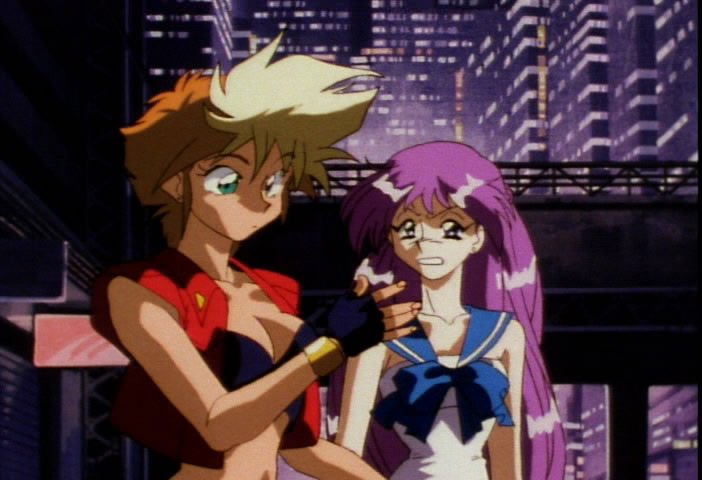 Dirty Pair Flash ダーティペアFLASH (1994) ダーティペアFLASH2 (1995) ダーティペアFLASH3 (1995) ダーティペアFLASH Производство: Япония Япония Жанр: приключения, комедия, фантастика, этти Тип: OAV (16 эп.), 27 мин. Выпуск: c 21.01.1994 по 25.04.1996 Режиссёр: Сунага Цукаса Автор оригинала: Такатихо Харука В ролях: Mariko Kokufuda Рика Матсумото Ким Севьер Сью Улу Yvonne Aquire Дэвид Белл Кертис Биллингс Bryan Bounds Steve Bulen Чарльз Кэмпбелл В каком порядке лучше смотреть эту серию: #1 Грязная Парочка [ТВ] - ТВ (24 эп.), оригинальный сериал, 1985 #2 Грязная Парочка: Ноландское дело - OAV (1 эп.), продолжение оригинального сериала, 1985 #3 Грязная Парочка: От Милых Ангелов с любовью - OAV (2 эп.), продолжение оригинального сериала, 1987 #4 Грязная Парочка OVA - OAV (10 эп.), продолжение, 1987 #5 Грязная Парочка: Проект Эдем - п/ф, продолжение, 1987 #6 Грязная Парочка: Заговор рейса 005 - OAV (1 эп.), продолжение, 1990 #7 Ослепительная Грязная Парочка - OAV (16 эп.), ремейк оригинального сериала, 1994 Эпизоды: Mission 1 01. Runaway Angel 02. Darkside Angel 03. Frozen Angel 04. Sleeping Angel 05. Stray Angel 06. Lovely Angel Mission 2 07. Tokyo Holiday Network 08. Mysterious High School Seventeen 09. Steamy Hotsprings Romantic Tour 10. Sparkling Flower Shop of Love 11. Tokyo Airport Hot Pursuit Mission 3 12. Snow White Chaser 13. Pink Sniper 14. The Winners In Summer Colors 15. My Boy In Rose Color 16. Grey Colored Avenger rindo [67] г. Москва Доверие - вот что потребуется для адекватного восприятия Dirty Pair Flash. Этот римейк громадины восьмидесятых годов возвращает дух того времени, когда определение "философский боевик" вызывало смех вместо понимающих кивков, а рефлексия персонажей выглядела примерно так: "Аннигиляция орбитальной станции на 250 000 человек... Как пишется "аннигиляция"?" Графика соответствует году выпуска. Кей и Юри выглядят помоложе и упрямее, проявилось сходство с Могучей Бёрди. Характеры рельефнее, сюжеты историй детальнее. Мохнатую зверюгу 1987 года убрали. Первая "миссия" - боевик с элементами комедии, вторая - комедия с элементами боевика, третья держится между ними, иногда уклоняясь в сторону наглой пародии (крошка-киллер в облике Сэйлор-сами-знаете-кого), местами сближаясь с более утонченной драмой чувств (жизнь в кукольном домике). Мир, обреченый быть ареной для девушек в легендарных купальниках, напоминает "Ковбоя Бибоп". Он так же полон нечистых на руку вождей и бизнесменов, бандитов и ученых. Луна, и та обгрызена. Наверно, поэтому в названии есть слово "грязная". Или оно появилось из-за того, что напарницы разруливают ситуации методами более чем пыльными. Сложно не замараться, отстреливаясь от мерзавцев с грудничком на руках. Но там же, в названии, есть слово Flash - "ослепительная, быстрая, как молния" - потому, что только с молнией можно сравнивать атаку танка со световым мечом в руке и поединок на фюзеляже реактивного самолета. Потому, что данная версия будущего ослепительна уже одним размахом - человечество распространилось по космосу, но помнит свое прошлое, в этой "грязной" вселенной строятся тематические парки размером с планету, а простым людям плевать на выступления диктатора всея Галактики. Добротное, энергичное и неглупое шоу, которое ничуть не устарело. [dimon] [3] г. Москва После просмотра всех предыдущих частей серии волей-неволей начался просмотр (пока) последней части, под искрящим названием flash. По-началу просмотра многое настораживает, напрягает, возмущает и отталкивает. Вообще, складывается такое впечатление, будто данные серии повествуют о времени ДО событий, развернувшихся в самой первой части, показанной по телевидению. Такое впечатл