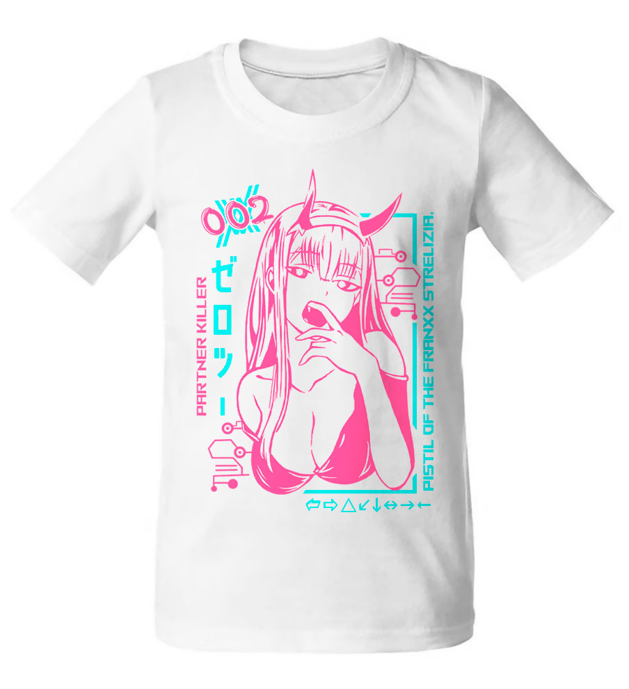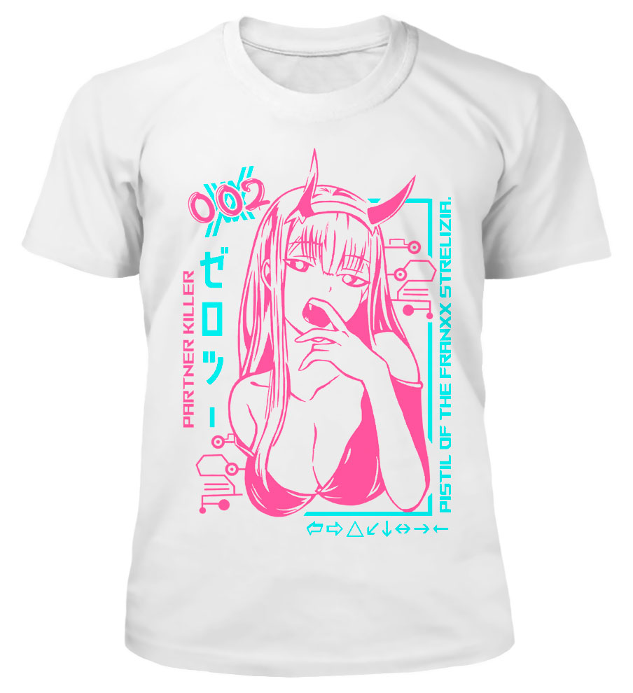 Футболка с изображением главной героини аниме “Любимый во Франксе” - Зеро Ту. На груди расположена качественная и детализированная картинка, выполненная в ярких и насыщенных цветах. Футболка выполнена из приятного на ощупь хлопка, который обеспечивает максимальный комфорт во время носки. Отличный выбор для всех поклонников данного аниме!