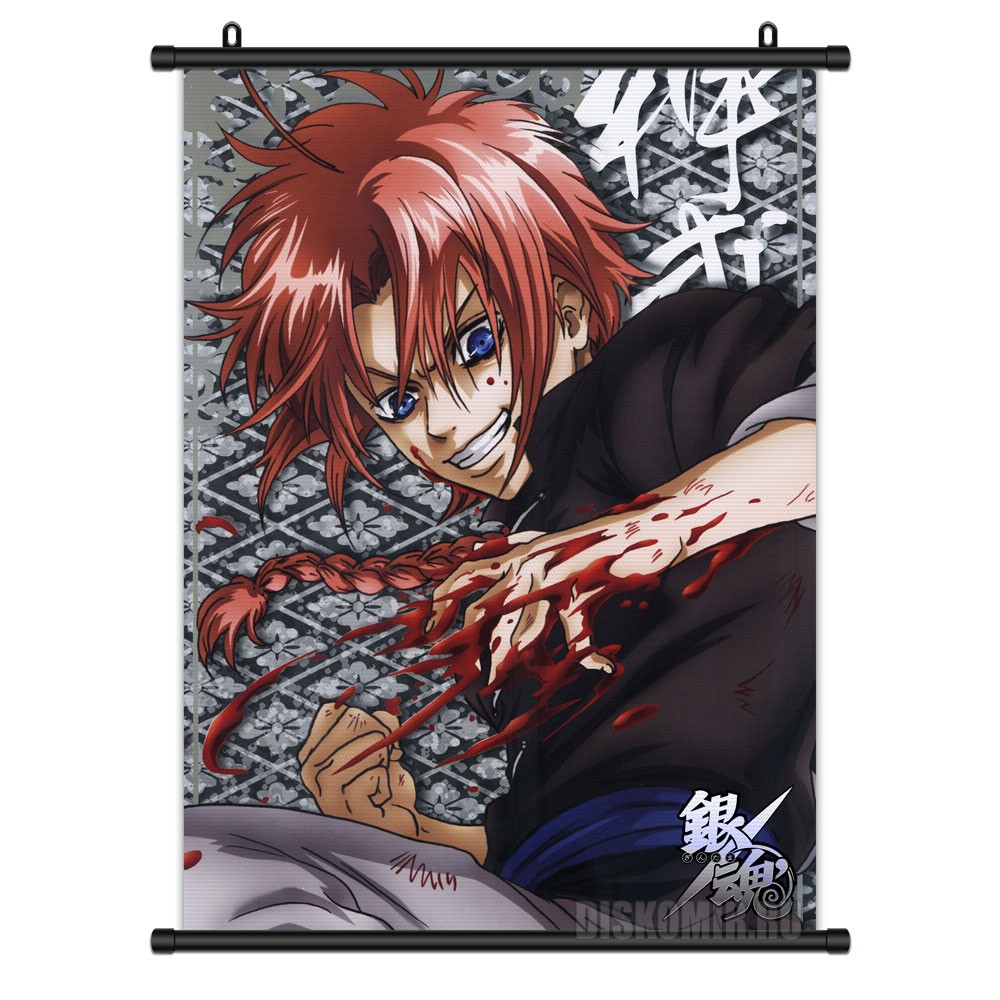 Улыбчивый убийца Камуи из аниме Gintama красуется на этом тканевом ролле-плакате в своей лучшей боевой стойке. Один из самых популярных на сегодняшний день аниме-сериалов с сильной военной составляющей был впервые продемонстрирован на японском телевидении в 2006 году, а до этого выходила комедийное аниме Gintama, написанное Хидэаки Сорати. Она выпускается по сей день.