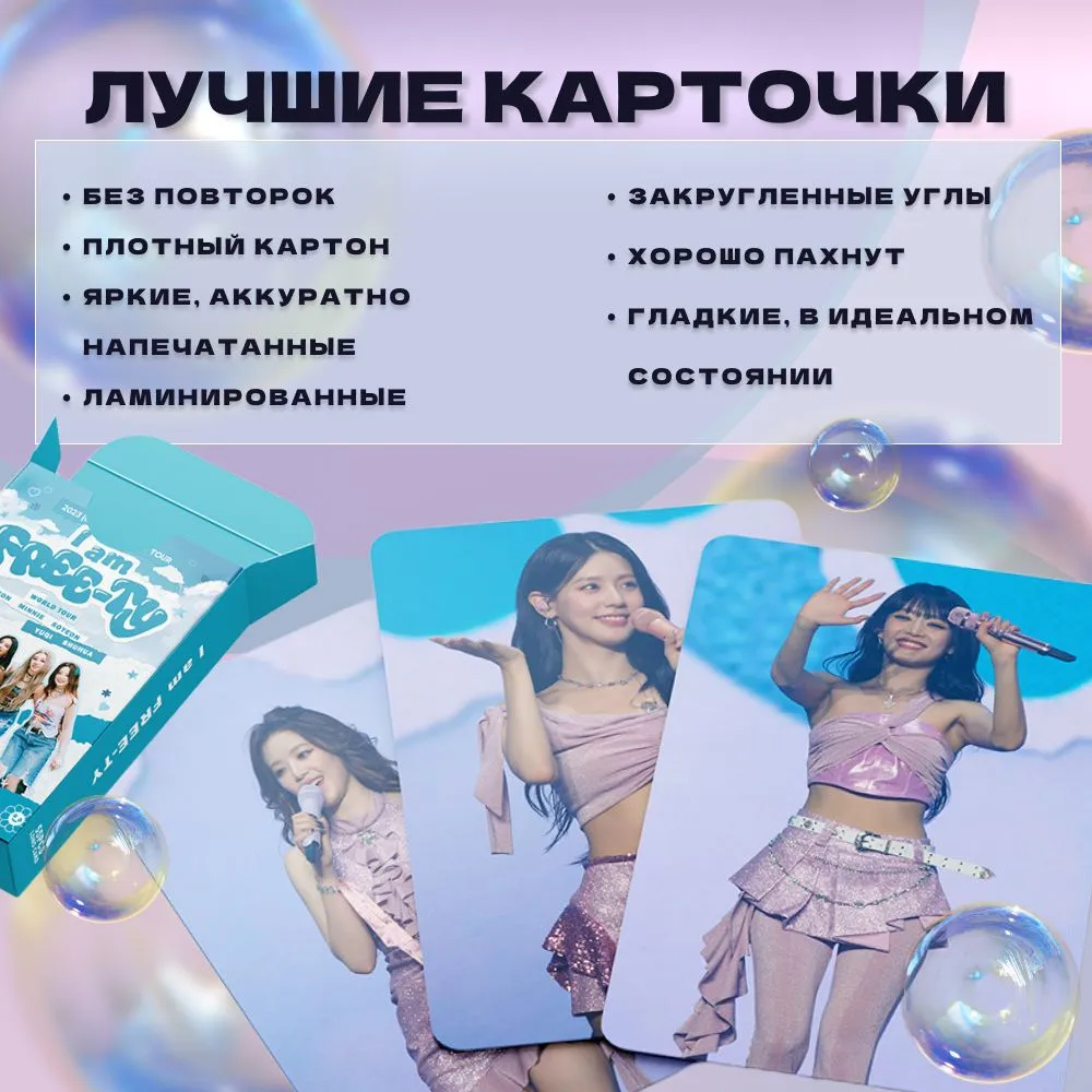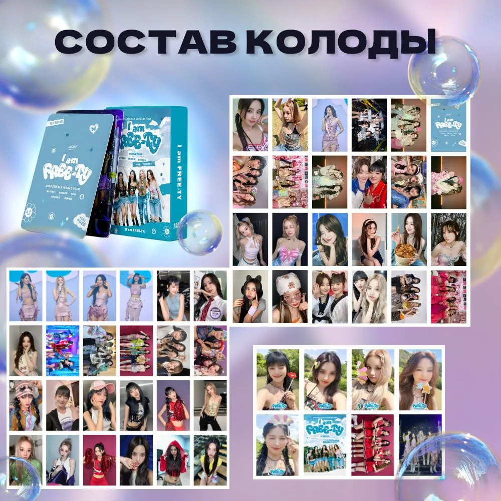 Карточки с Джи Айдл с фотографиями участниц коллектива, исполняющего в стиле кпоп, посвященные выходу (G) I-dle Free Ty. В набор к поп коллекционных карт G idle 55 штук. В каждом комплекте k-pop карточек (g)i-dle моменты из жизни участников культовой команды, радующих своим творчеством в стиле k pop фанатов по всему миру. Подойдёт для тех кто любит к поп карты. Карты к поп будут отличным дополнением в атрибуты фаната герл-бенд.