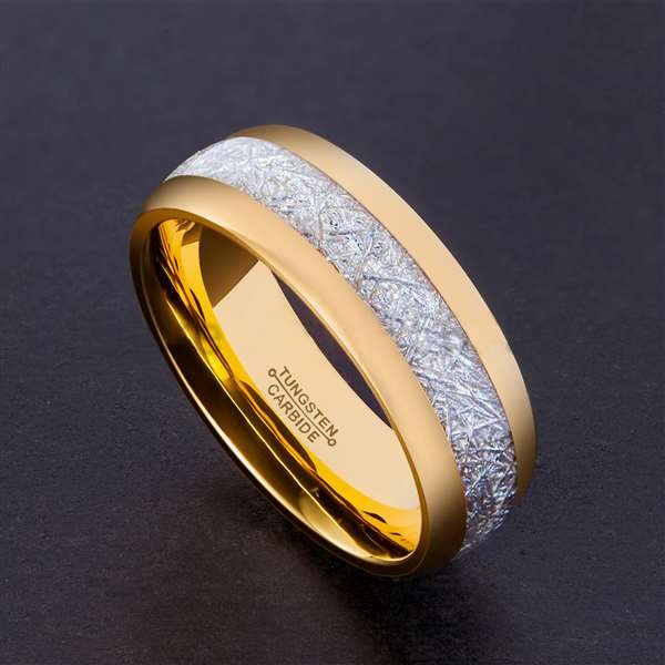 Кольцо из вольфрама золотого цвета. Это кольцо имеет современный дизайн и отлично подойдет молодому человеку.