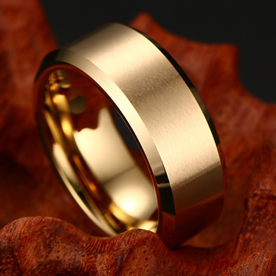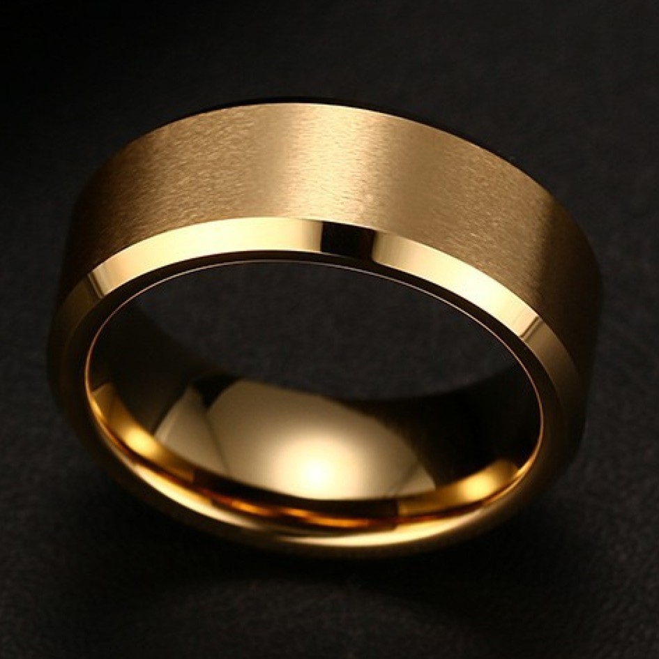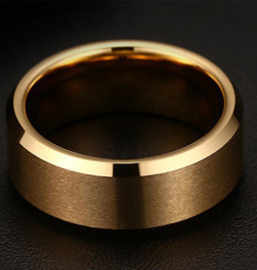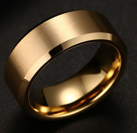 Кольцо из вольфрама золотого цвета. Это кольцо имеет современный дизайн и отлично подойдет молодому человеку.