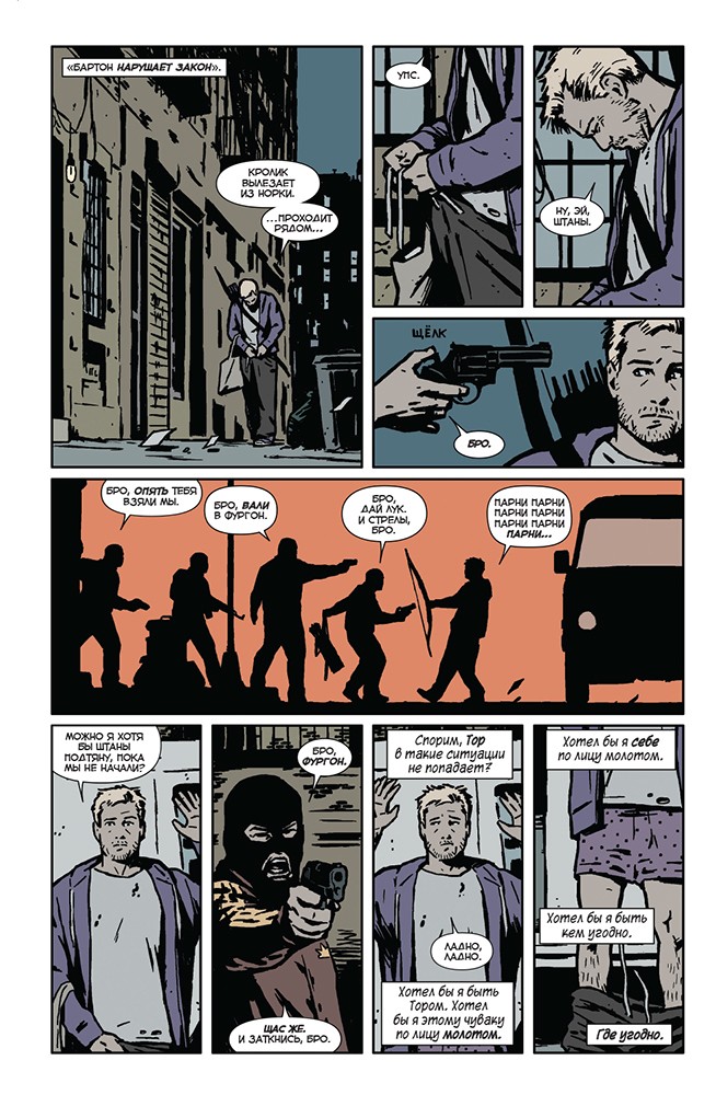 Придя в себя после недавних событий, даже сам Хоукай пытается понять свой новый статус-кво. Кто с ним? Кто против него? Кто пытается его убить и почему? И когда кажется, что положение Клинта - хуже некуда, появляется его брат. Клинт и Барни Бартоны всю жизнь делали неверный выбор, но теперь они понимают, что им нужно спасти друг друга. Если, конечно, они сперва друг друга не прикончат. Но когда Клоун и Упыри в трениках осаждают дом Клинта, первый раунд кончается нокаутом. Станут ли оглушённые и покалеченные Бартоны лёгкой добычей для Треников? А "Рио Браво" смотрели? Братья Бартоны объединяют усилия, готовясь к необычной перестрелке! Бро, не пропусти.