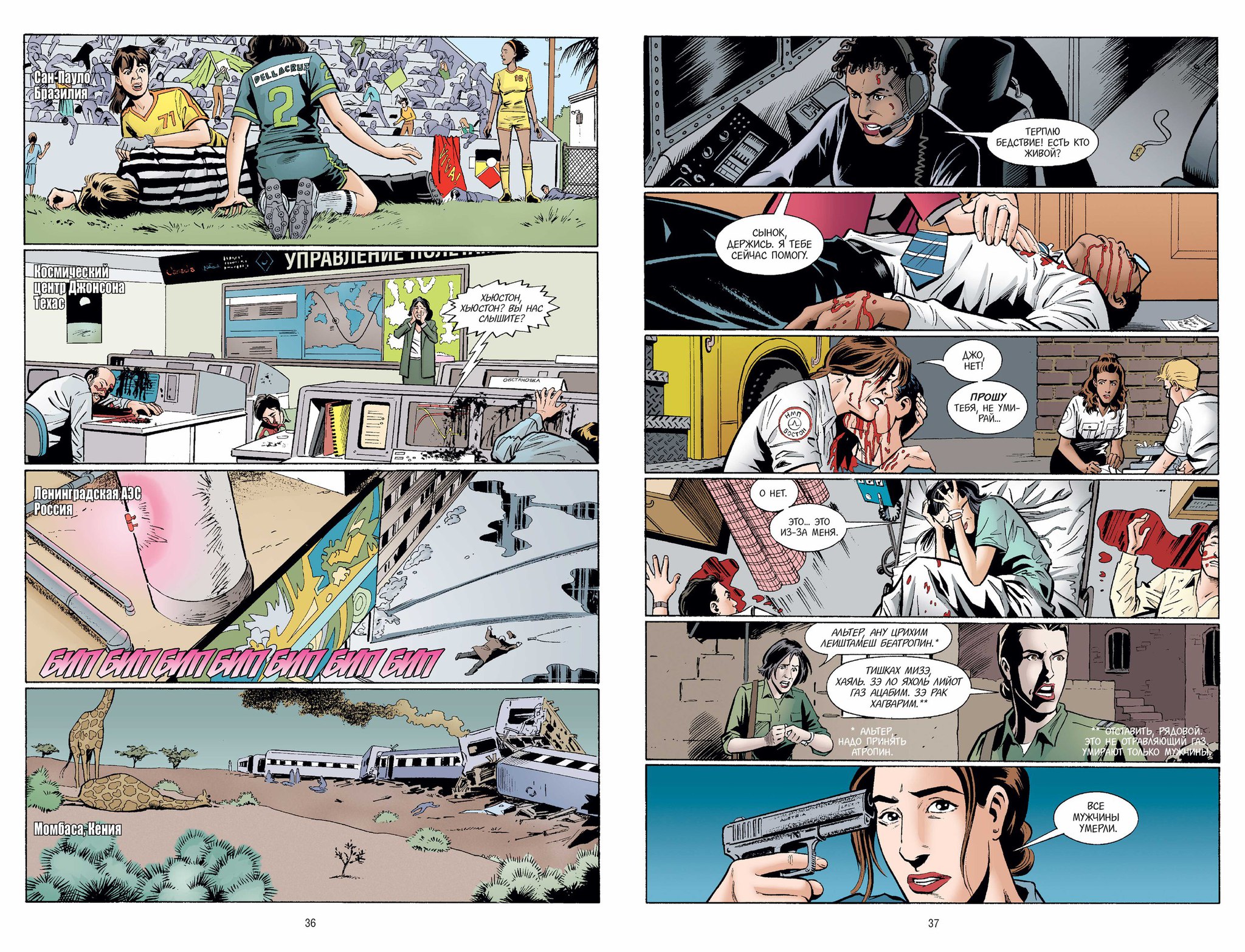 В 2002 году мир навсегда изменился. Повсюду на земле все мужчины и мальчики, все млекопитающие с Y-хромосомой разом упали и умерли. Из-за гибели более чем половины человечества шестеренки общества застопорились. Теперь перед женщинами стоит задача: собрать мир по частям и уберечь цивилизацию от полного коллапса. «Гендерцид», впрочем, оказался не вполне тотальным. По неведомым причинам молодой человек, Йорик Браун, и его ручной капуцин Амперсанд остались живы. За одну ночь безвестный юнец оказался главным человеком на планете — возможным ключом к загадке гендерноспецифической эпидемии. А самый важный для самого Йорика человек находится за 10 000 миль от него, и юноша готов на все, чтобы ее отыскать. Однако пускаясь в путь по миру, где остались одни женщины, парнишка и обезьянка обнаруживают, что за ними охотятся — с самыми разными целями. Создатели книги – Брайан К. Вон, лауреат премии Айснера, сценарист-продюсер телесериала «Lost», автор комиксов «Ex Machina» и «Львы Багдада»; художник Пиа Гуэрра — лауреат премий Шустера и Айснера; Хосе Марсан-младший, контуровщик «Приключений Супермена», «Флэша», «Лиги Справедливости» и многих других. В издание делюкс входят выпуски с 1-го по 10-й, наброски и примечания. Сюжет: Brian K. Vaughan Карандаш: Pia Guerra Тушь: Jos_ Marz_n Jr. Цвет: Pamela Rambo, Digital Chameleon, Zylonol Studios Обложка: J.G. Jones Оригинальное название: Y: The Last Man: The Deluxe Edition. Book 1 Издатель оригинала: DC Comics, Vertigo Всего томов/выпусков в оригинальной серии: 60 выпусков Первое издание оригинала: Июль 2002 - апрель 2003 (синглы); Январь 2008 (сборник) |