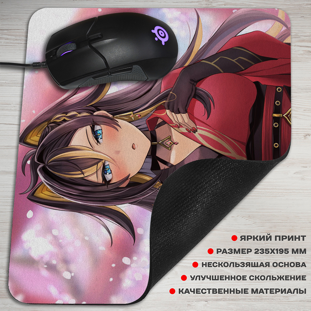 Коврик для мыши из игры Genshin Impact, это один из самых нужных аксессуаров, если у вас есть компьютер. Верхнее покрытие из специальной ткани с крутым артом из аниме, обеспечивающей улучшенное скольжение мыши по коврику. Для того чтобы аксессуар надежно фиксировался на поверхности стола, он оснащен прорезиненным основанием.