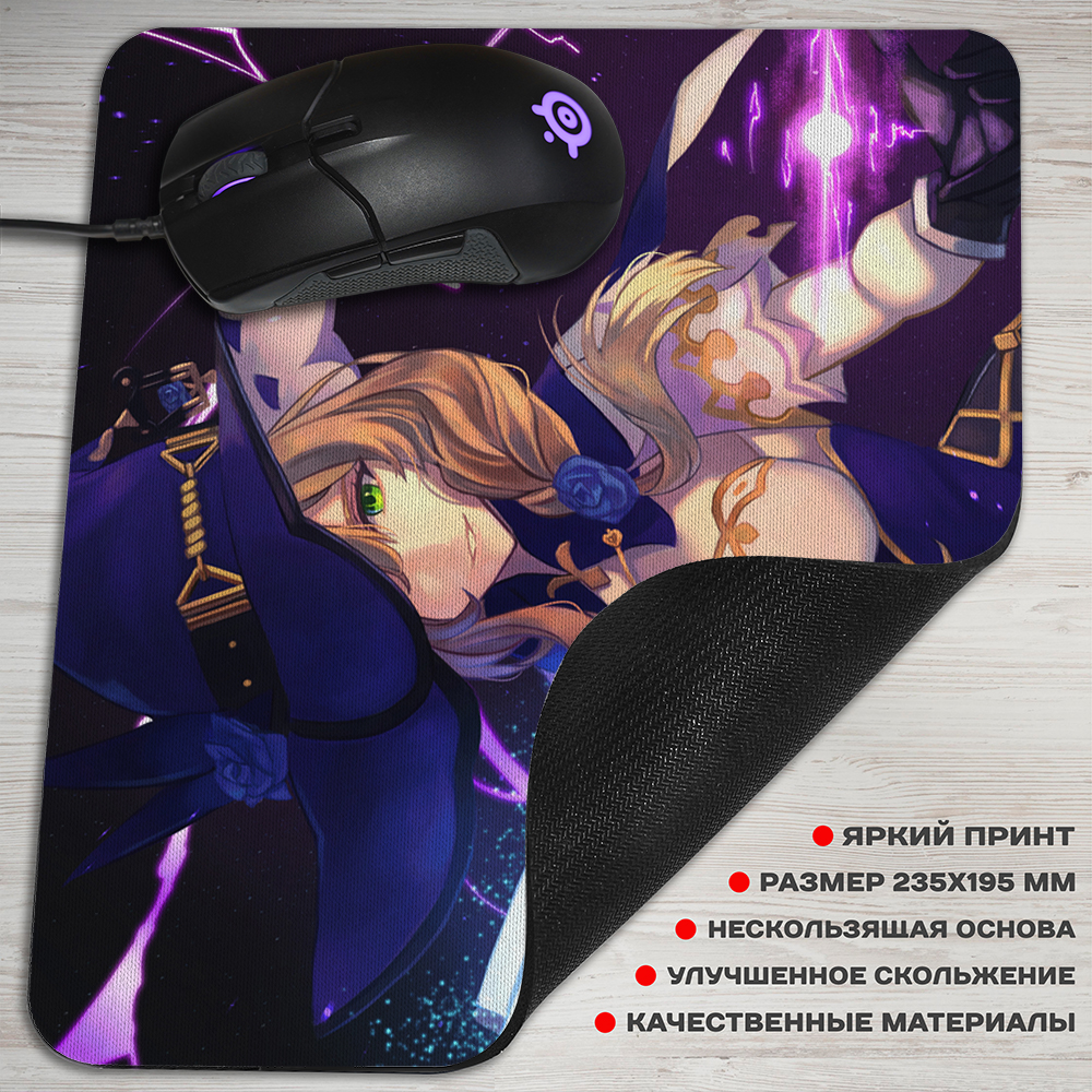 Коврик для мыши из игры Genshin Impact, это один из самых нужных аксессуаров, если у вас есть компьютер. Верхнее покрытие из специальной ткани с крутым артом из аниме, обеспечивающей улучшенное скольжение мыши по коврику. Для того чтобы аксессуар надежно фиксировался на поверхности стола, он оснащен прорезиненным основанием.