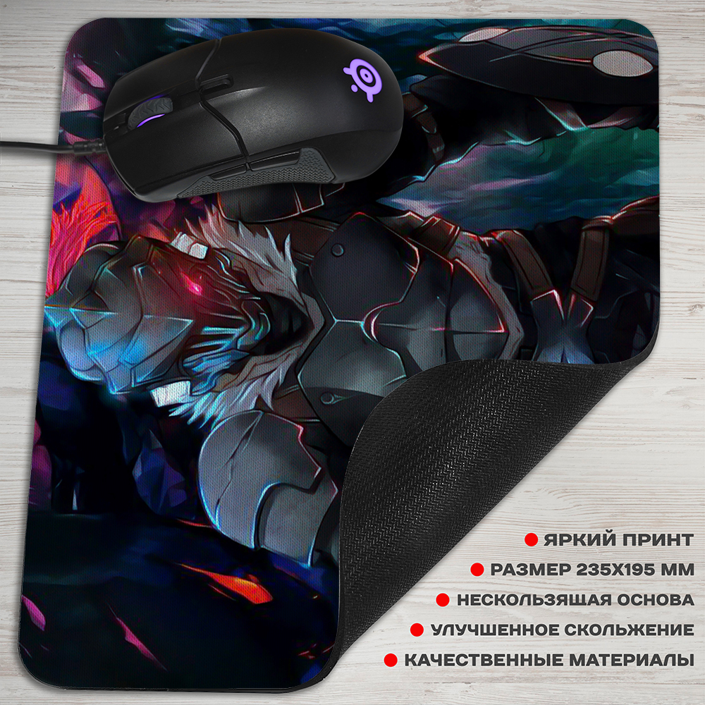 Коврик для мыши из аниме Убийца гоблино, это один из самых нужных аксессуаров, если у вас есть компьютер. Верхнее покрытие из специальной ткани с крутым артом из аниме, обеспечивающей улучшенное скольжение мыши по коврику. Для того чтобы аксессуар надежно фиксировался на поверхности стола, он оснащен прорезиненным основанием.