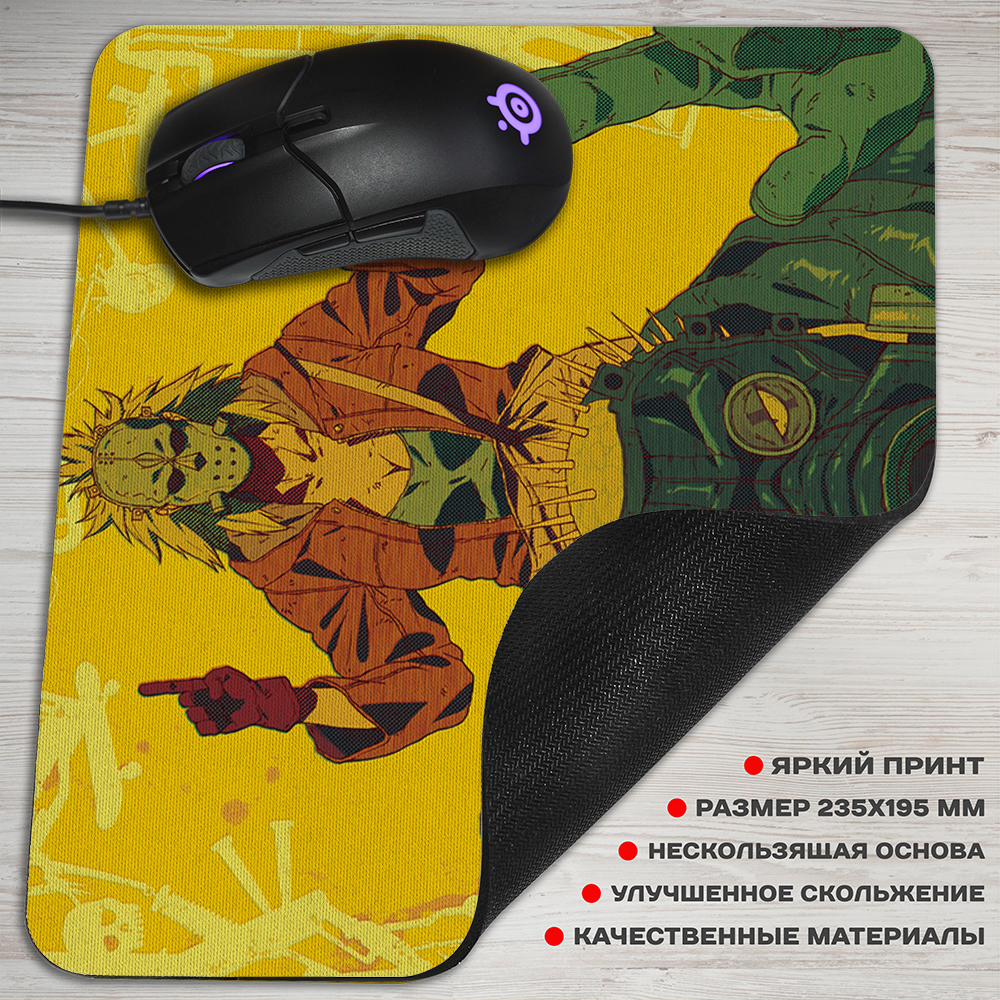 Коврик для мыши с персонажами Кайман и Никайдо и аниме Дорохедоро, это один из самых нужных аксессуаров, если у вас есть компьютер. Верхнее покрытие из специальной ткани с крутым артом из аниме, обеспечивающей улучшенное скольжение мыши по коврику. Для того чтобы аксессуар надежно фиксировался на поверхности стола, он оснащен прорезиненным основанием.