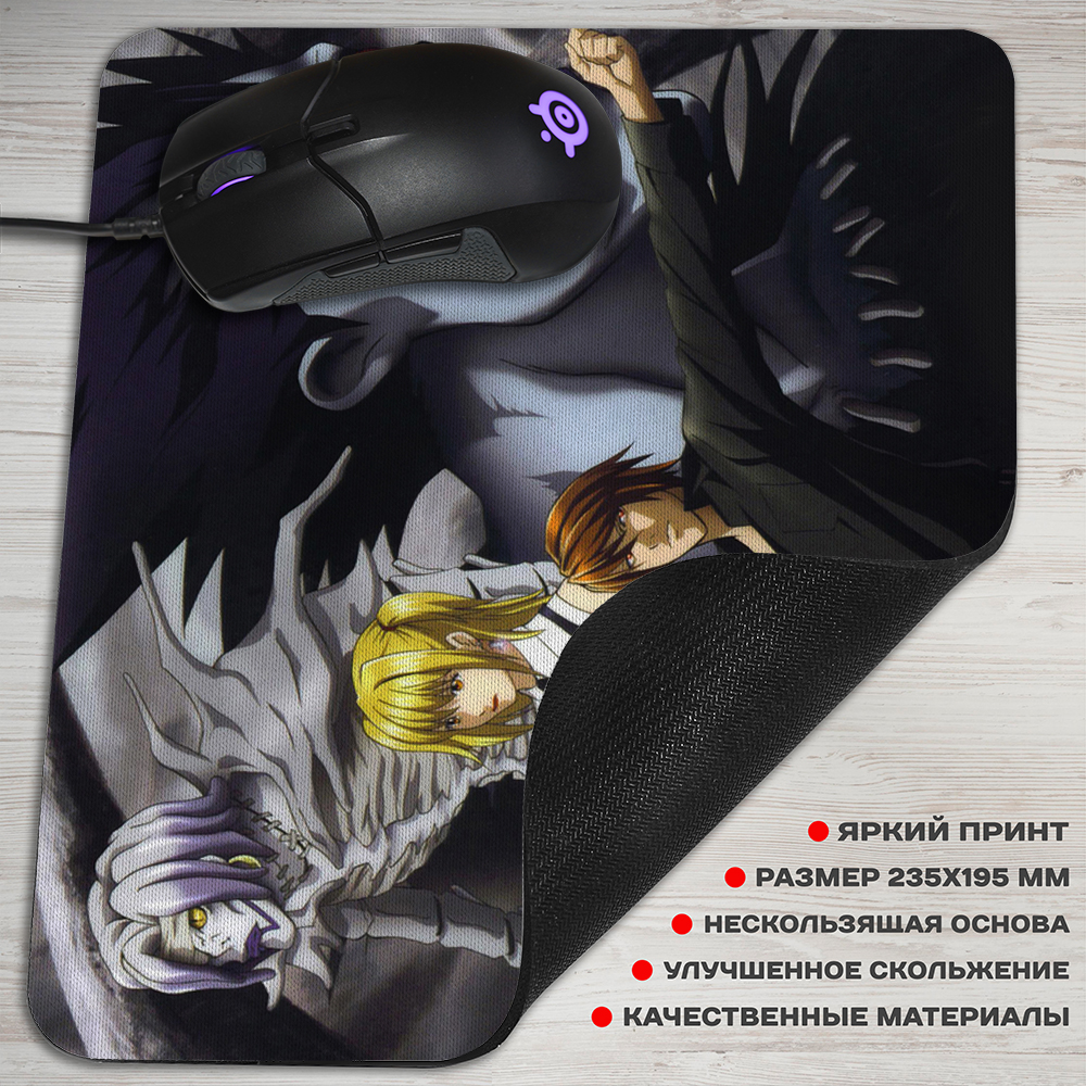 Игровой коврик для мышки с ярким и стильным дизайном, вдохновленным популярным аниме "Тетрадь Смерти". На нем изображены главные герои сериала, создавая атмосферу приключений и мистики. Коврик обеспечивает отличное скольжение мыши, что делает его идеальным выбором для геймеров и любителей аниме. Погрузитесь в увлекательный мир аниме с этим стильным и функциональным аксессуаром!
