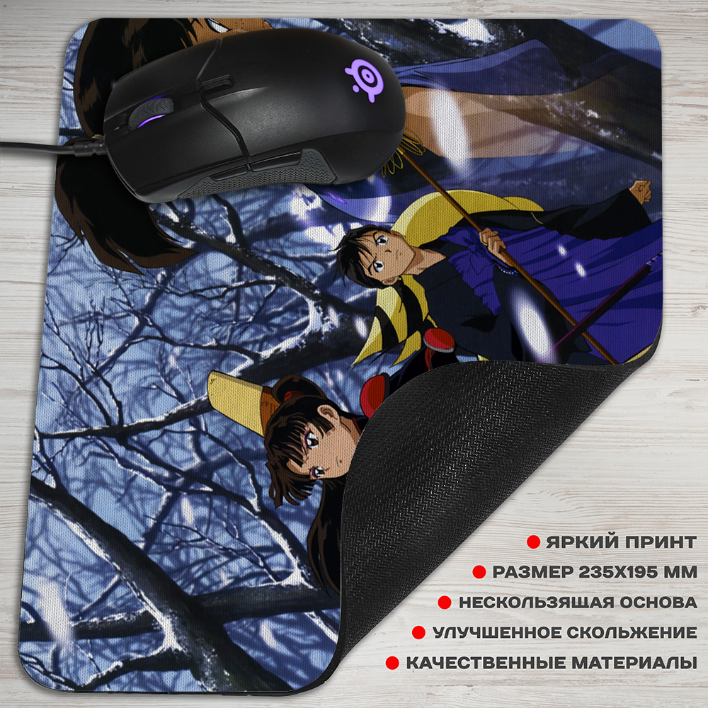 Коврик для мышки с центральными персонажами сериала «InuYasha». Кагомэ – обычная девушка из современности, попадает в средневековый мир, где она оказалась совсем не случайно. Она – хранительница камня, который способен наделить демона большой силой. Тут она знакомится с Инуясей- парнем-ханъе, который когда-то сам охотился за этим артефактом, желая стать полноценным демоном.