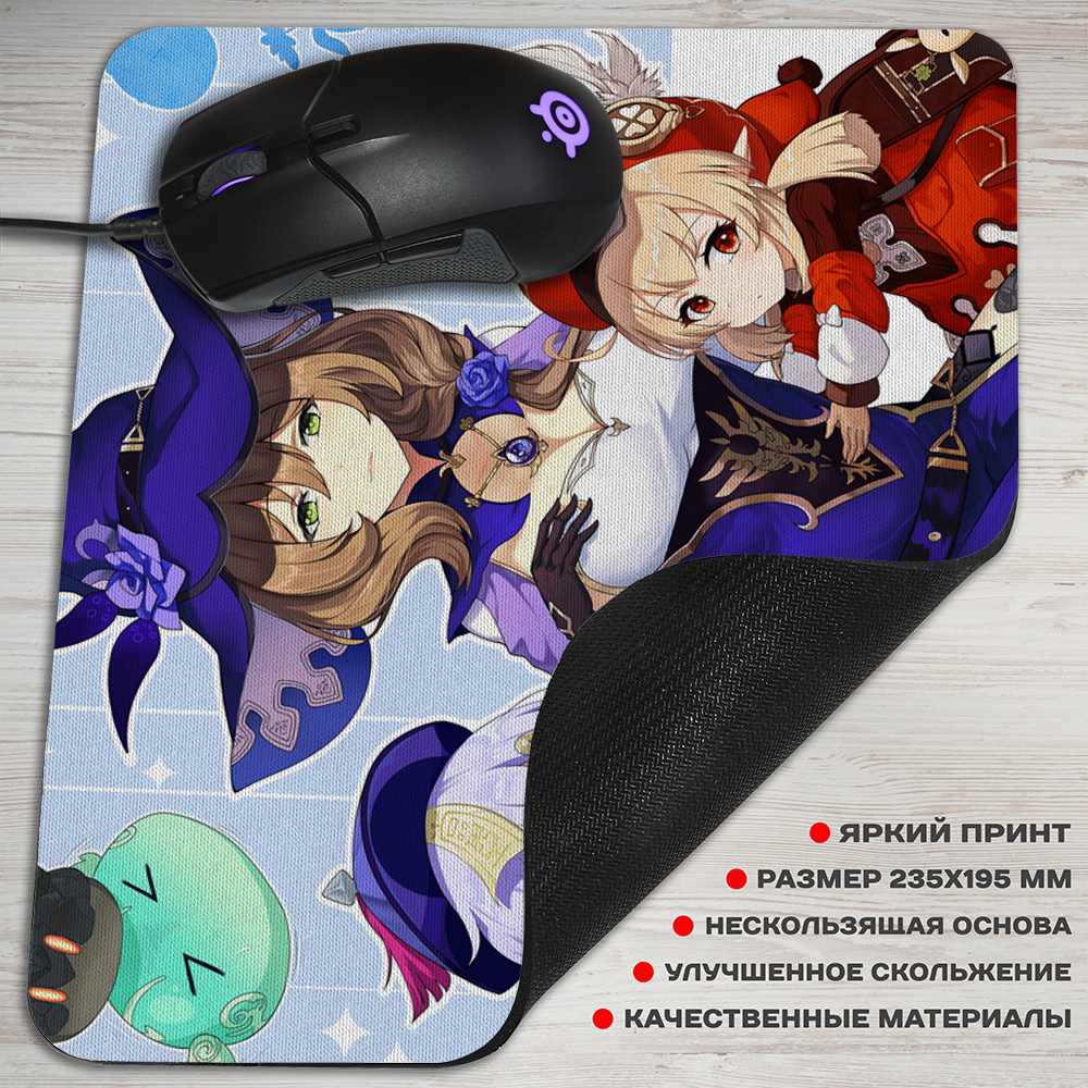 Коврик для мыши из игры Genshin Impact, это один из самых нужных аксессуаров, если у вас есть компьютер. Верхнее покрытие из специальной ткани с крутым артом из аниме, обеспечивающей улучшенное скольжение мыши по коврику. Для того чтобы аксессуар надежно фиксировался на поверхности стола, он оснащен прорезиненным основанием.