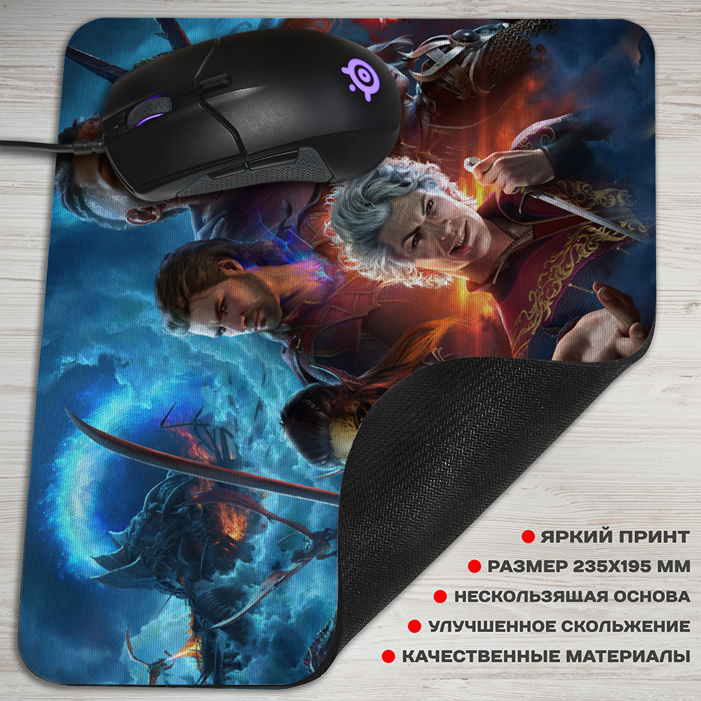Игровой коврик для мыши с ярким дизайном по игре Врата Балдура 3 - стильное и практичное дополнение для вашей игровой зоны. Основание из плотной резины предотвращает скольжение и обеспечивает крепкое сцепление с поверхностью стола, а оптимальный размер 29х36,5 см удобен как для игры, так и для повседневной работы с мышью. Высококачественная печать передает яркие и насыщенные цвета изображения, создавая неповторимую атмосферу любимой игры. Получайте комфорт и эстетическое наслаждение вместе с игровым ковриком для мыши Baldurs Gate 3!