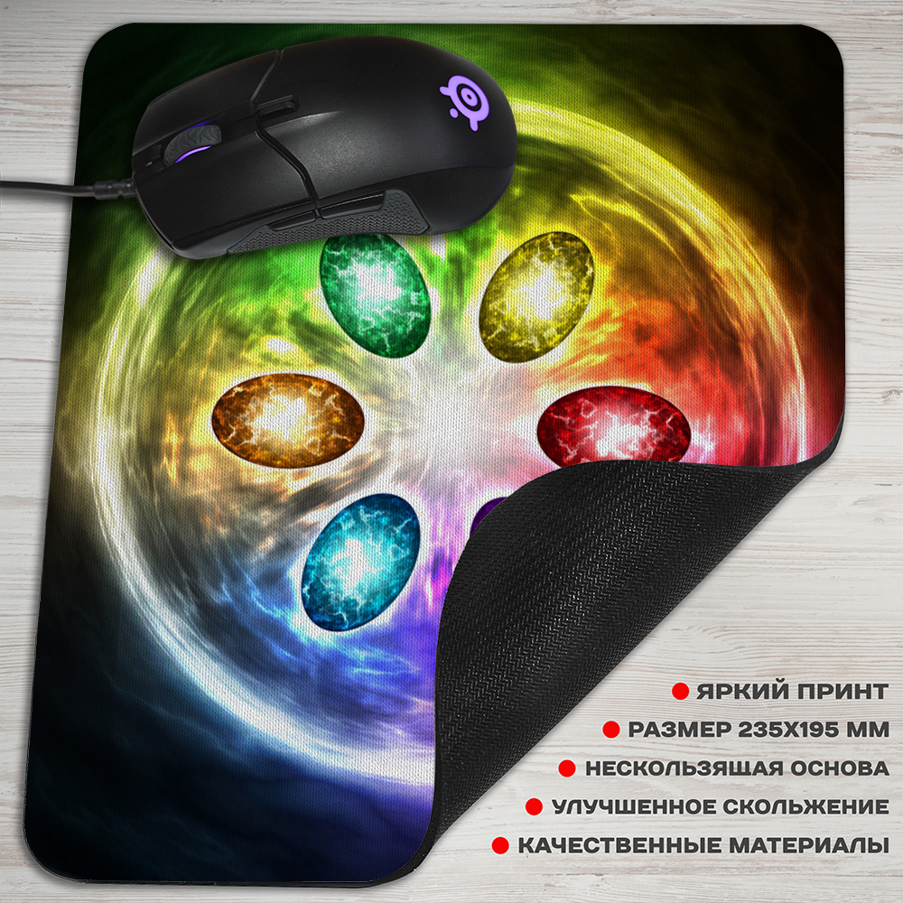 Коврик для мыши с изображением камней бесконечности из фильма “Avengers” - это стильный и функциональный аксессуар для поклонников кино. Коврик выполнен в прямоугольной форме из качественных материалов и обеспечивает точное позиционирование мыши. Он также имеет нескользящее покрытие, что предотвращает скольжение и повреждение поверхности стола. Такой коврик станет прекрасным украшением рабочего стола и будет напоминать о любимых фильмах.