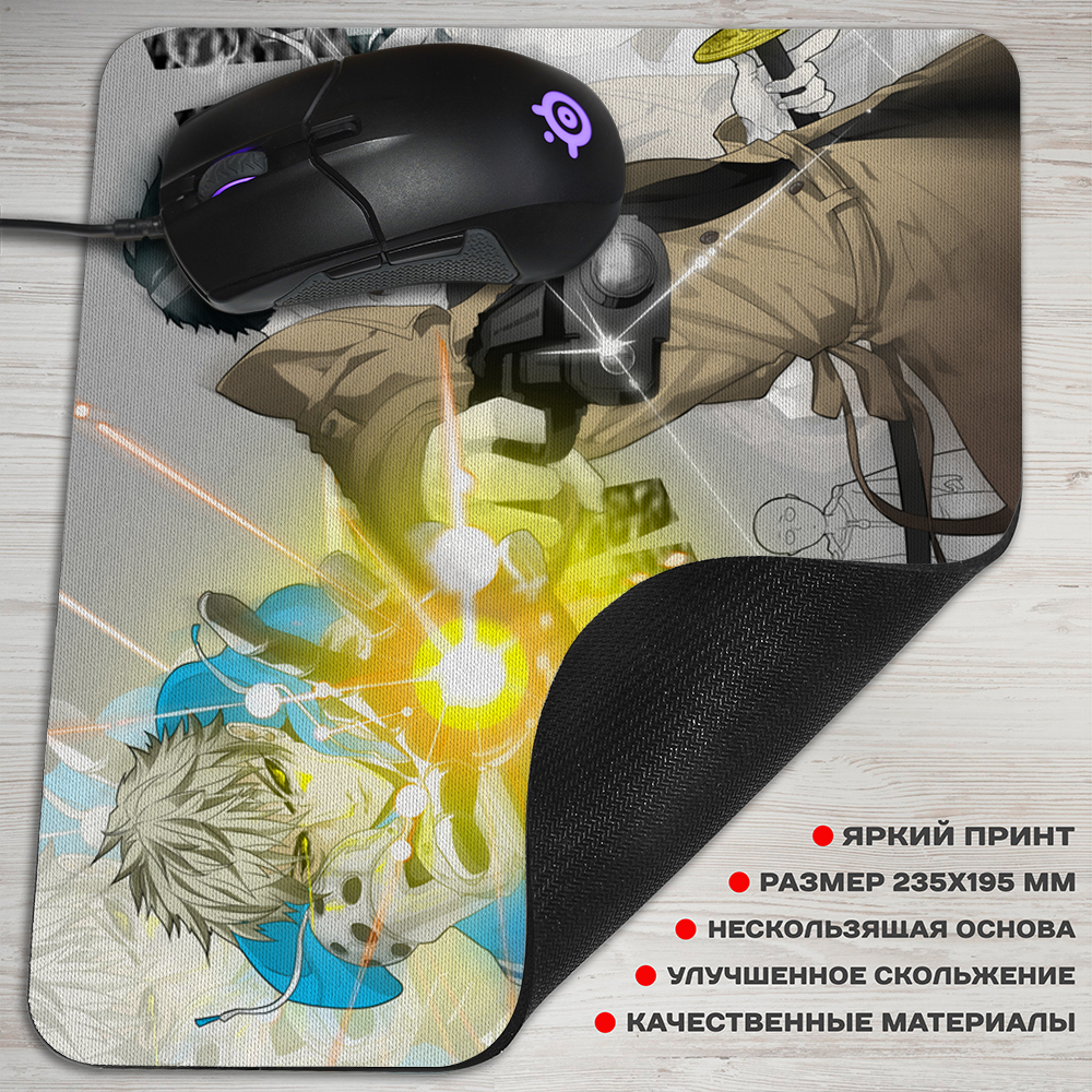 Подарите своему рабочему столу стильный и удобный аксессуар - прямоугольный коврик для мышки с ярким принтом Ванпанчмена, Геноса и Зомбимена. Высококачественная поверхность обеспечивает плавное скольжение мышки, а прочная резиновая основа предотвращает скольжение коврика по столу. Этот коврик не только защитит вашу мышку от износа, но и станет отличным дополнением к вашему рабочему пространству.