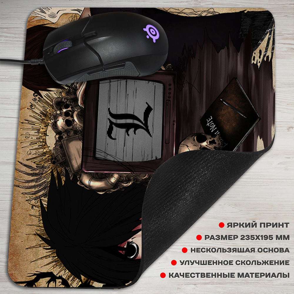 Коврик для мышки с артом Тетрадь Смерти - стильный аксессуар для любителей японской анимации. Изготовлен из высококачественного материала, обеспечивающего плавное скольжение мыши. Уникальный дизайн с изображением персонажей из популярного аниме "Тетрадь Смерти" придаст вашему рабочему столу индивидуальность и оригинальность. Подарите себе или своим друзьям коврик, который не только улучшит работу с компьютером, но и станет отличным элементом декора.