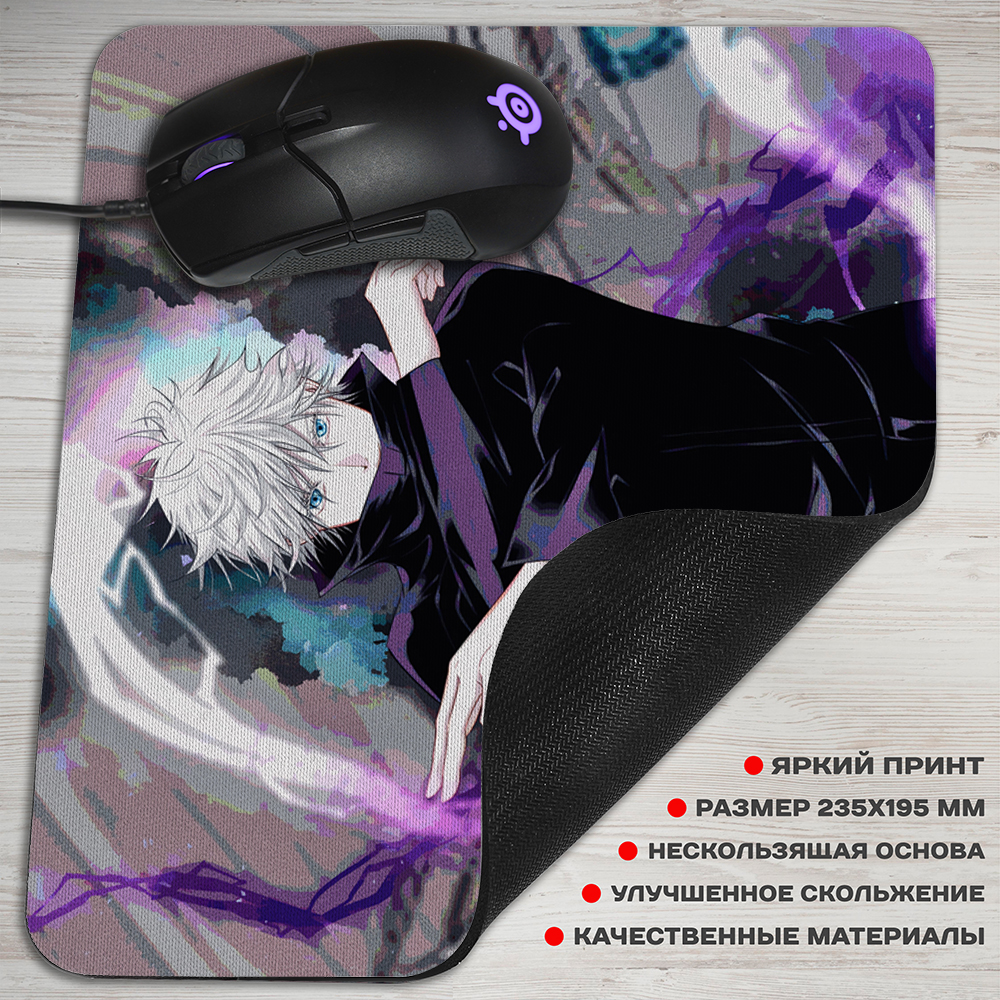Коврик для мыши из аниме Магическая битва, это один из самых нужных аксессуаров, если у вас есть компьютер. Верхнее покрытие из специальной ткани с крутым артом из аниме, обеспечивающей улучшенное скольжение мыши по коврику. Для того чтобы аксессуар надежно фиксировался на поверхности стола, он оснащен прорезиненным основанием.