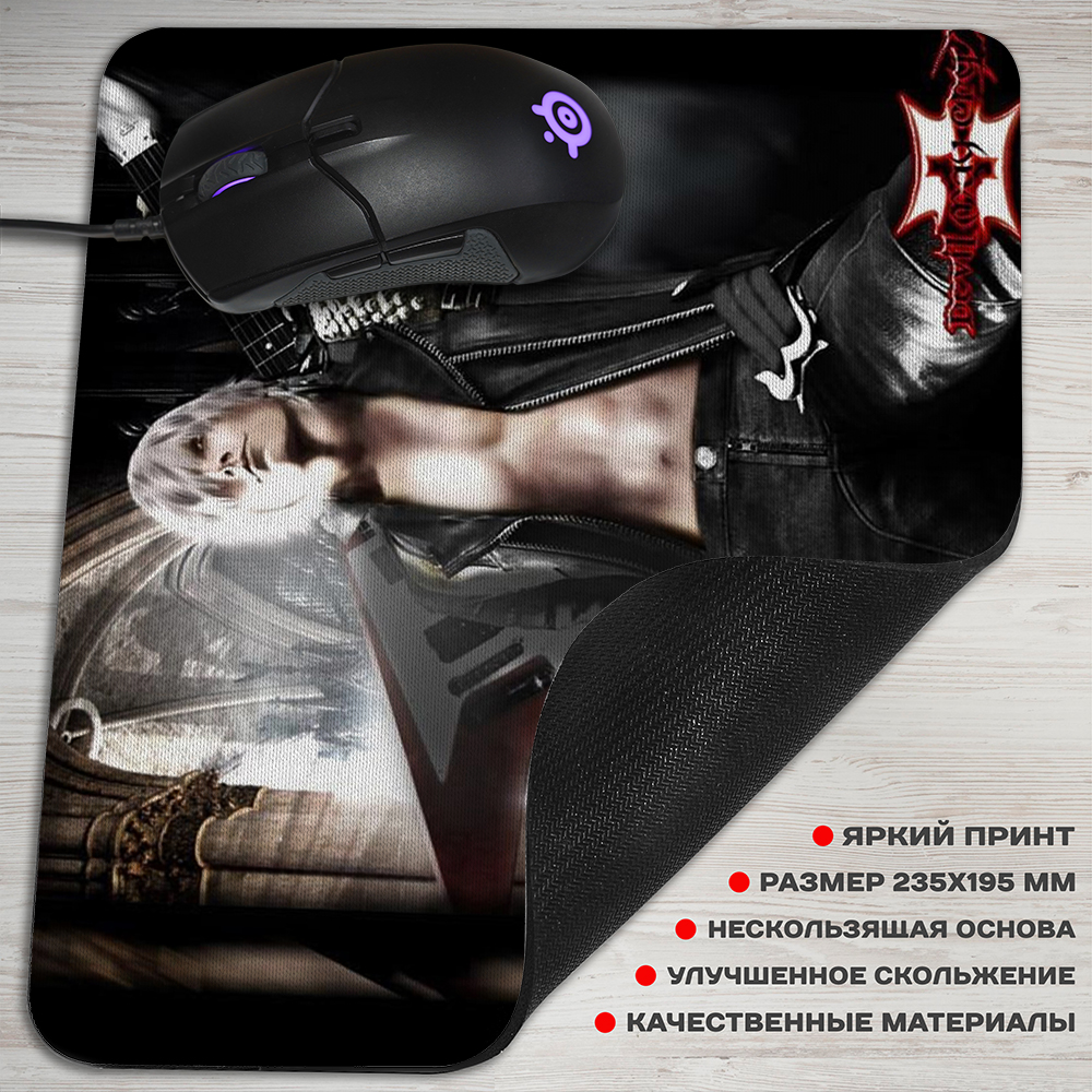 Коврик для мышки по второй части культовой видеоигры «Devil May Cry». На нем изображен Данте – протагонист истории, стоящий с оружием-гитарой. Герой является полудемоном и, несмотря на то, что старается держаться подальше от мира демонов, является его неотъемлемой частью, и то и дело попадает в неприятности. История о нем была адаптирована в популярный аниме-сериал.