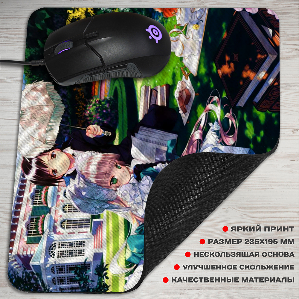 Коврик для мышки по аниме «Gosick». Его действие разворачивается в альтернативной реальности, где главный герой, Кадзуя Кудзе, знакомится в академии со странной девушкой. Она часто пропускает занятия и все своей время проводит в библиотеке за книгами. Викторика изучает всевозможные тайны и помешана на раскрытия тайн. Подружившись с ней, герой сам оказывается в водовороте невероятных мистических приключений.