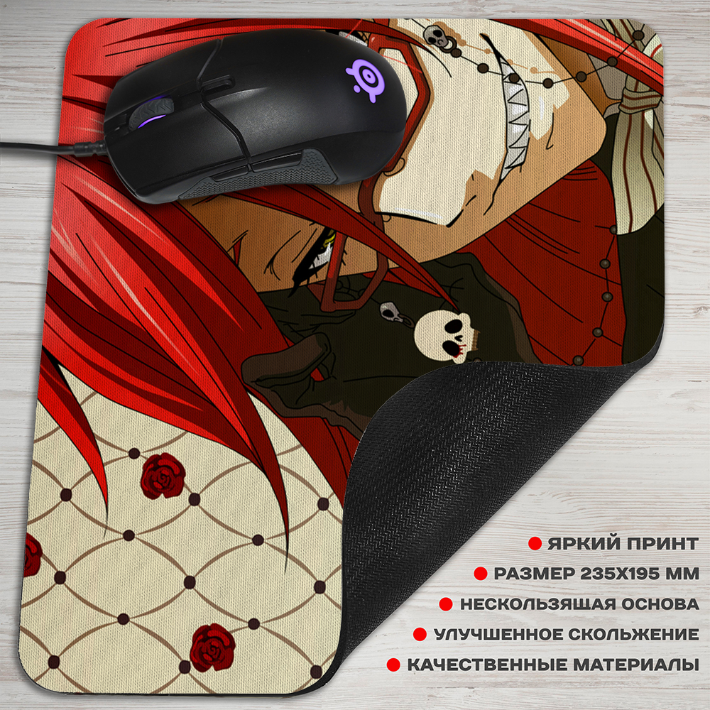 Коврик для мышки с Греллем, антагонистом «Kuroshitsuji». Этот харизматичный герой является одним из дворецких, но на деле - настоящим маньяком, которой убил много ни в чем неповинных людей. Он не раз встает на пути главных героев. Грелль достаточно наивен и его легко обмануть. Каждый раз он по-детски расстраивается, что кому-то удалось обвести его вокруг пальца.