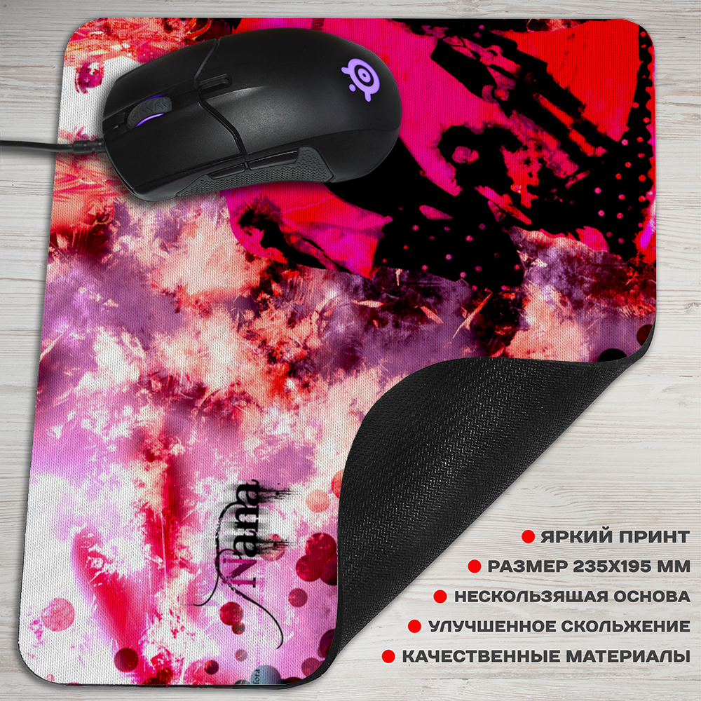 Коврик для мышки с героями аниме «NANA». На нем изображен весь состав панк-рок группы «Black Stones» вокалисткой которой является одна из главных героинь. Нана мечтает о большой сцене, чтобы ее песни были услышаны. Для этого она пребывает в большой город, где встречает девушку с таким же именем, которой суждено стать ее лучшей подругой и опорой в самых трудных ситуациях.