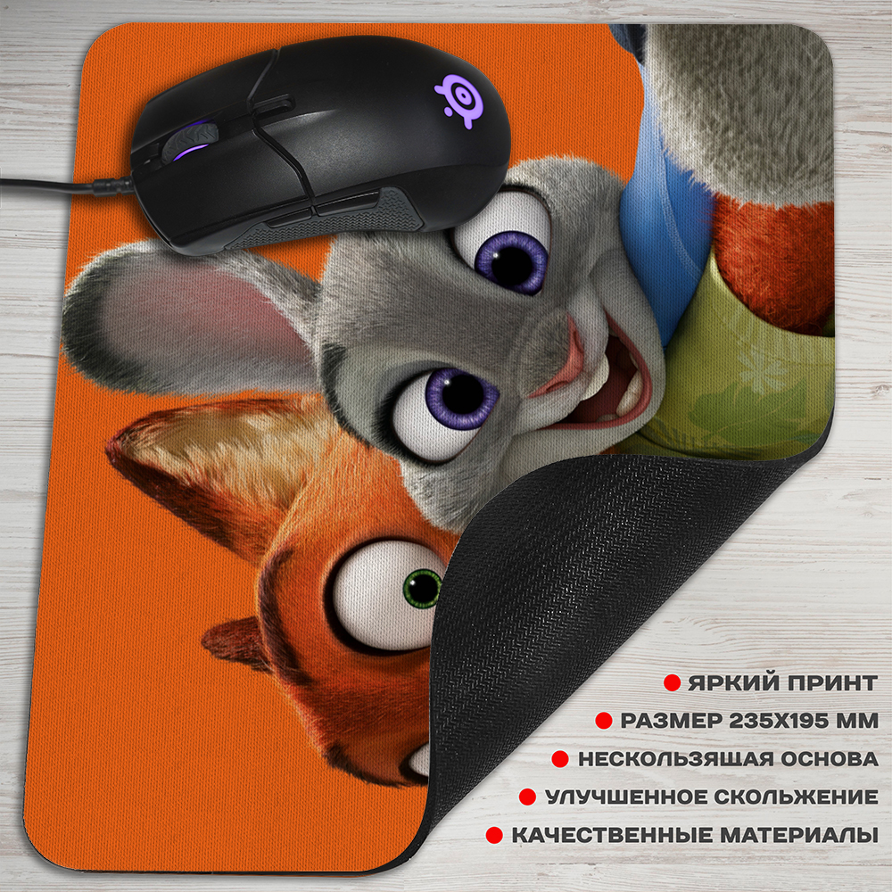 Коврик для мышки прямоугольной формы с ярким и стильным дизайном из популярного мультфильма "Зверополис". Идеально подходит для работы с компьютером или ноутбуком, обеспечивая плавное скольжение мыши и точное позиционирование. Прочная основа предотвращает скольжение коврика на поверхности стола. Этот коврик станет отличным дополнением к вашему рабочему месту и подарит вам комфорт и удовольствие от использования.