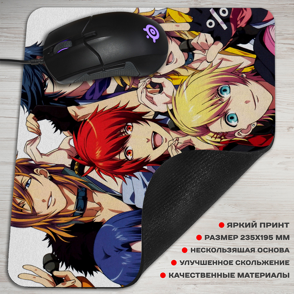 Коврик для мышки с харизматичными героями «Uta no Prince-sama: Maji Love 1000%». В этой история обычная девушка-музыкант попадает в очень неординарную школу. Тут она мечтает раскрыть свой талант, ведь еще с детства писала прекрасную музыку. В новом месте ее окружают симпатичные парни, которые в будущем станут поп-идолами. Не будет ли этой преградой ее учебе?