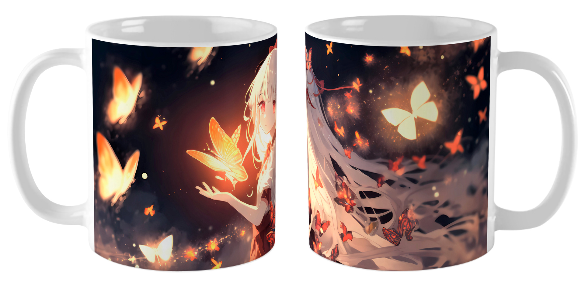 Кружка Аниме девушка — это сюрреалистичное танго с бабочками! Изготовленная из качественной белой керамики, она украшена изображением девушки, чей образ растворяется в рое крыльев, создавая оптическую иллюзию между реальностью и грезой. Удобная классическая форма и гладкая поверхность обеспечивают комфортное использование, а стойкая печать сохраняет ирисовые переливы и филигранные детали после многократного мытья. Арт-объект для тех, кто видит поэзию в метаморфозах.