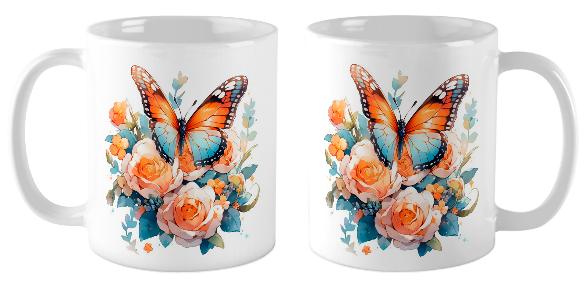 Кружка «Бабочка на розах» — это стильный аксессуар для вашего стола! Изготовленная из качественной белой керамики, она украшена изображением бабочки на розах. Удобная классическая форма и гладкая поверхность обеспечивают комфортное использование, а стойкость печати гарантирует сохранение четкого рисунка после многократного мытья. Практичный вариант для ежедневных напитков.