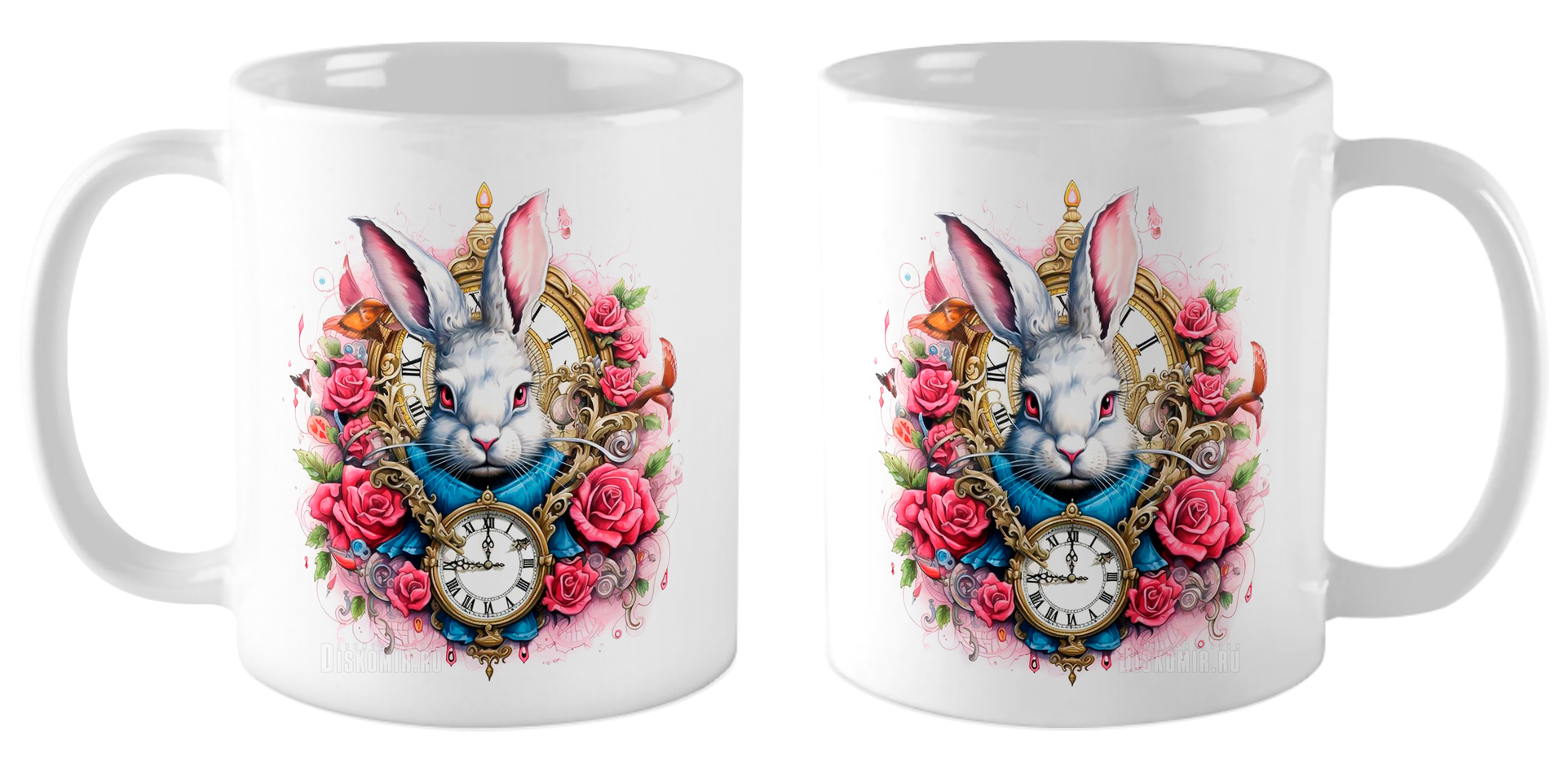 Кружка Белый кролик в розах / Алиса в стране чудес