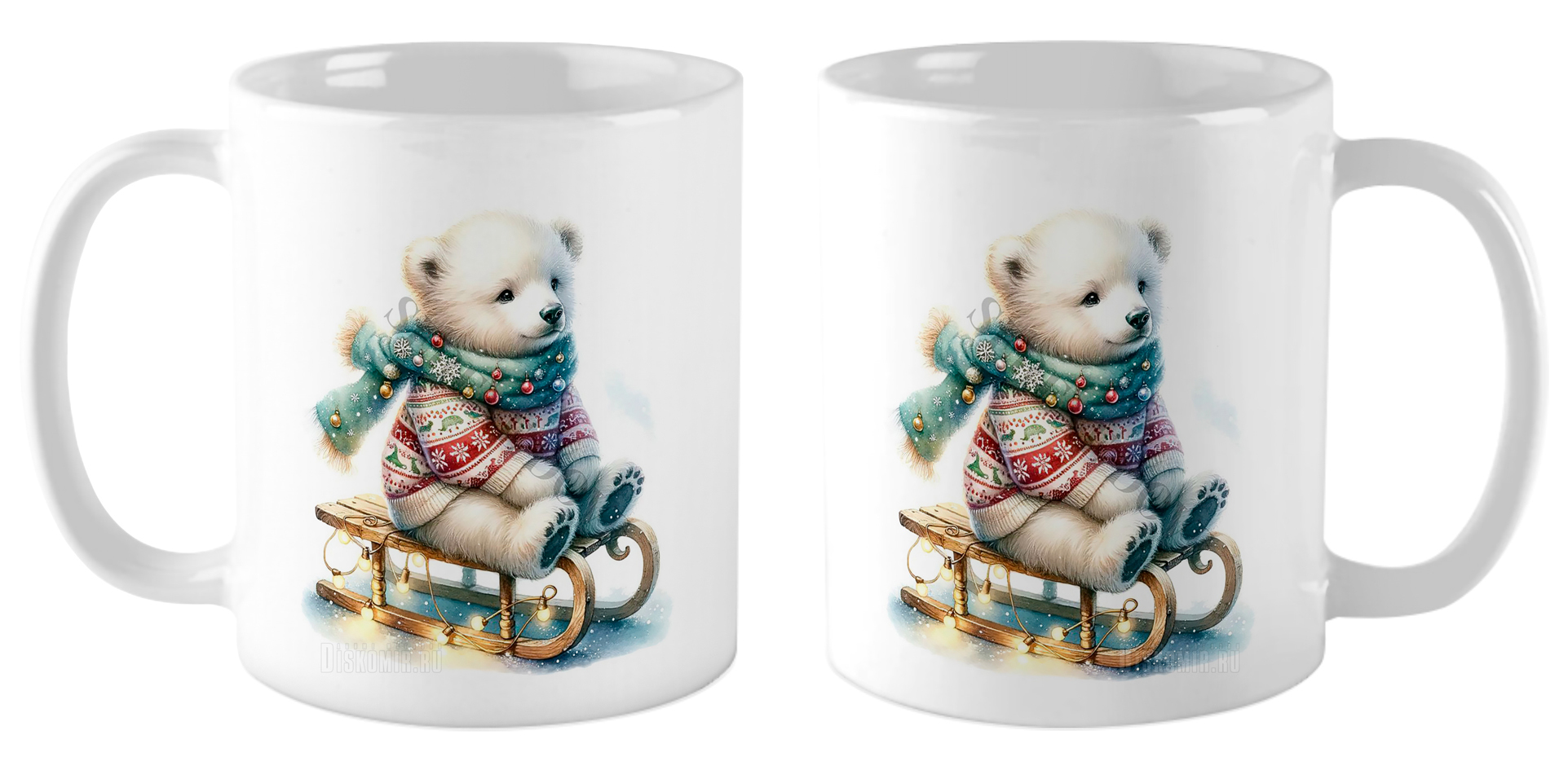 Кружка Белый мишка на санках / Акварель