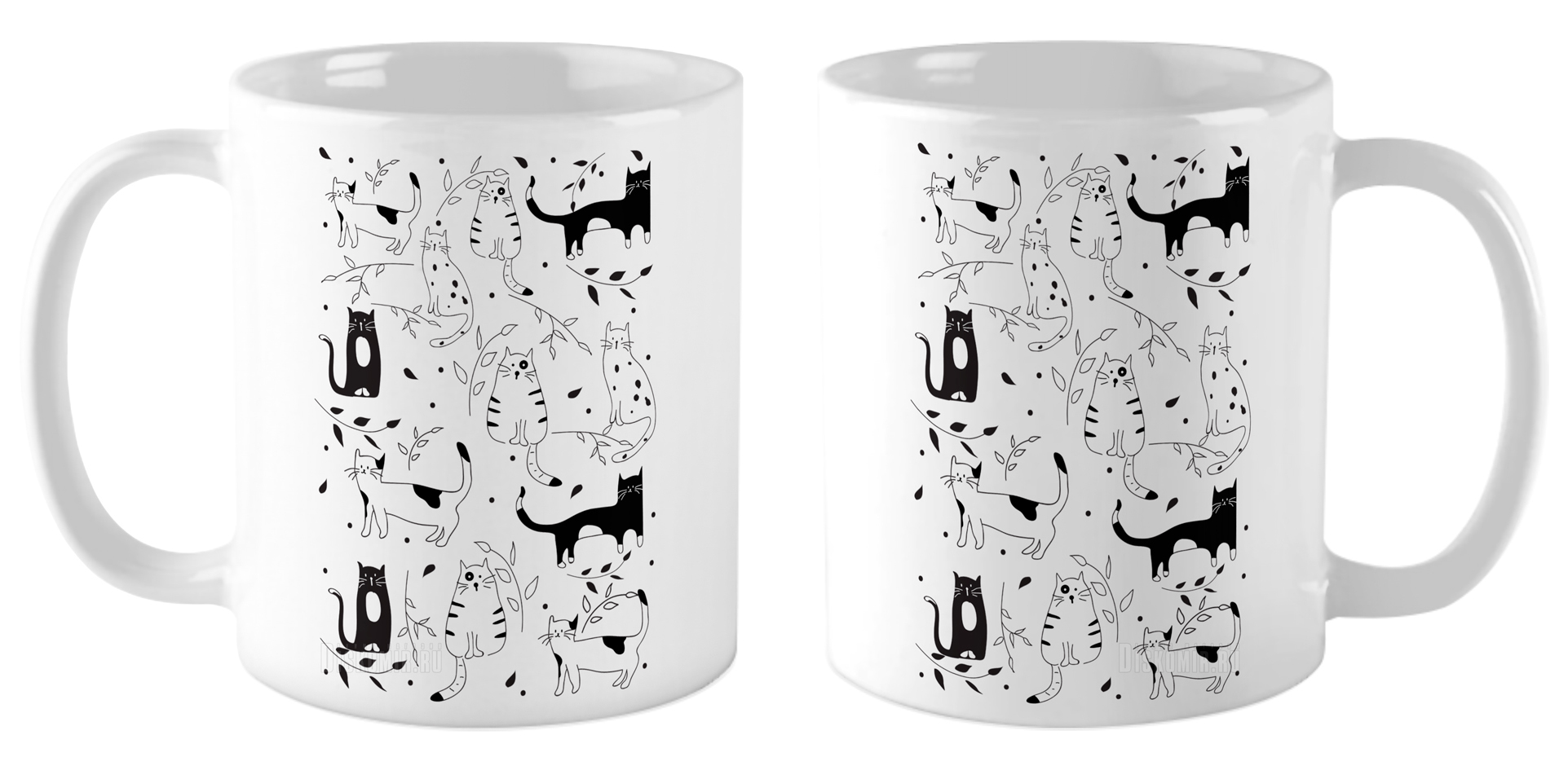 Керамическая кружка белого цвета с милым принтом котиков. Объем составляет 300 мл, подходит как для горячих, так и для холодных напитков. Высокое качество печати и керамики обеспечивает сохранность рисунка даже после мытья в посудомоечной машине. Прекрасный подарок для людей, которые любят кошек и эстетику в мелочах.