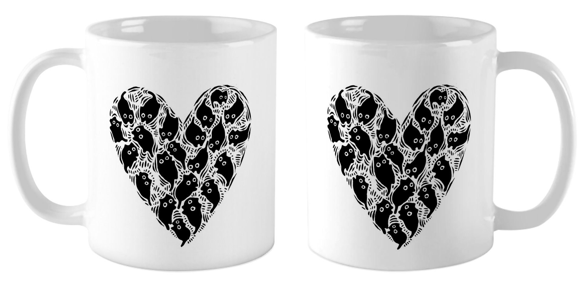 Кружка «Черные коты в виде сердца» — это стильный аксессуар для вашего стола! Изготовленная из качественной белой керамики, она украшена изображением черных котов в виде сердца. Удобная классическая форма и гладкая поверхность обеспечивают комфортное использование, а стойкость печати гарантирует сохранение четкого рисунка после многократного мытья. Практичный вариант для ежедневных напитков.