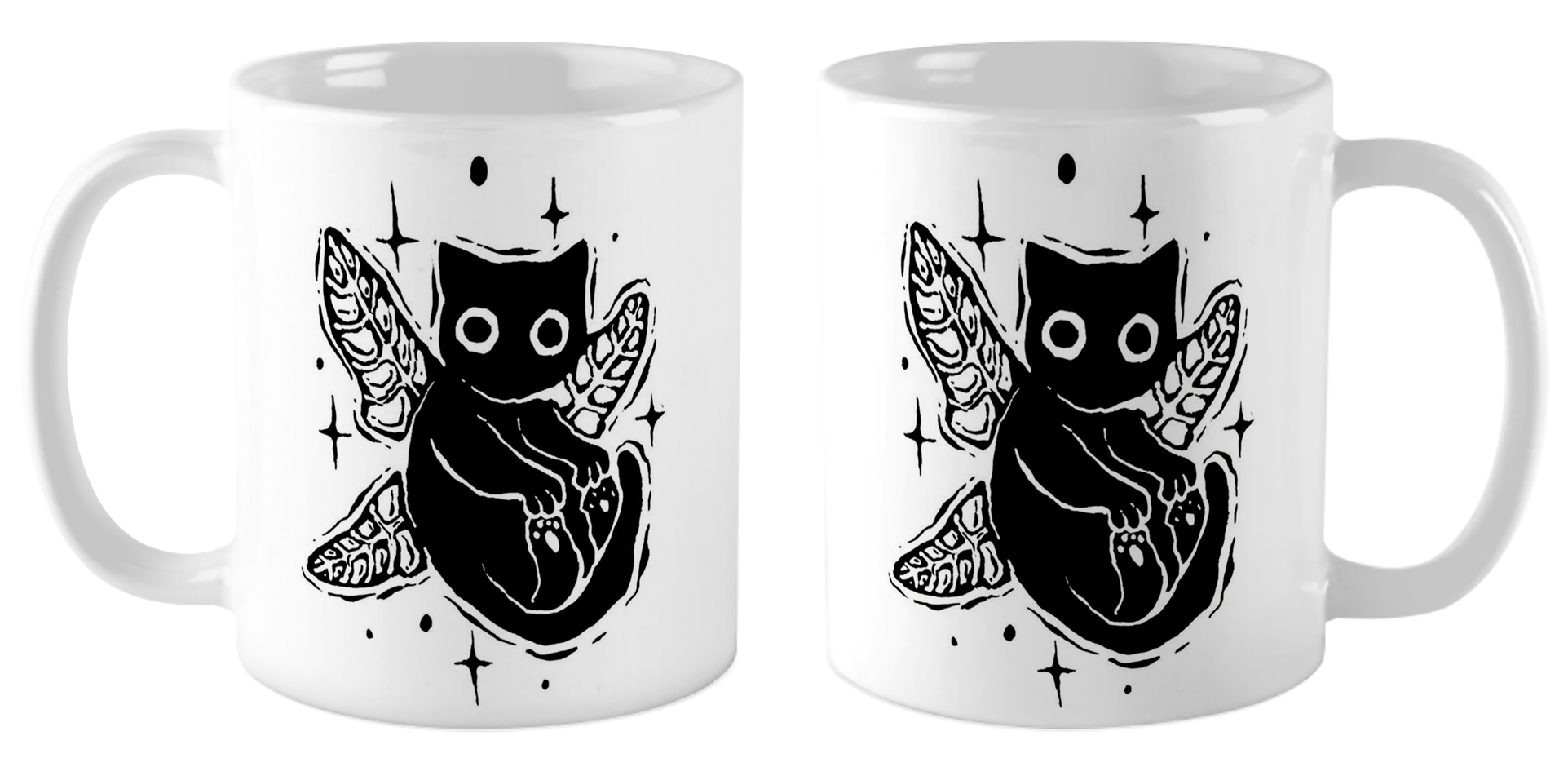Кружка «Черный кот с крыльями» — это стильный аксессуар для вашего стола! Изготовленная из качественной белой керамики, она украшена изображением черного кота с крыльями. Удобная классическая форма и гладкая поверхность обеспечивают комфортное использование, а стойкость печати гарантирует сохранение четкого рисунка после многократного мытья. Практичный вариант для ежедневных напитков.