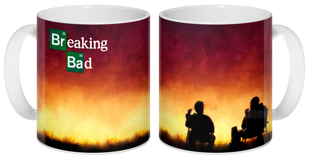 Кружка с рисунком из известнейшего криминального сериала «Breaking Bad». Это рассказ о непростой жизни школьного учителя, который узнает о своей неизлечимой болезни. Объединившись со своим бывшим учеником, он становится основателем новой подпольной империи, занимающейся изготовлением нелегальных веществ, но с самого начала герой понимает, что она не может существовать вечно.