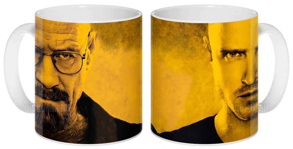 Кружка с главными героями «Breaking Bad». Уолтер Уайт был обычным школьным учителем, когда узнал о своей неизлечимой болезни. Ему, гениальному химику, не остается ничего иного кроме как прибегнуть к нечестным путям заработка, чтобы обеспечить своей семье достойное будущее. Эта захватывающая история, наполненная юмором, пришлась по вкусу многим зрителям, что сделало сериал одним из несомненных хитов.