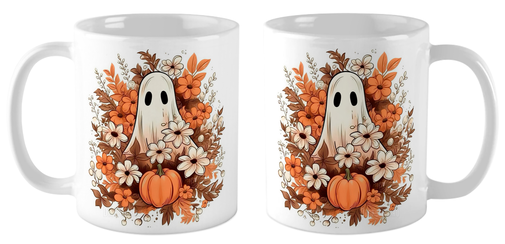 Кружка Хэллоуин / Привидение с тыквой в цветах