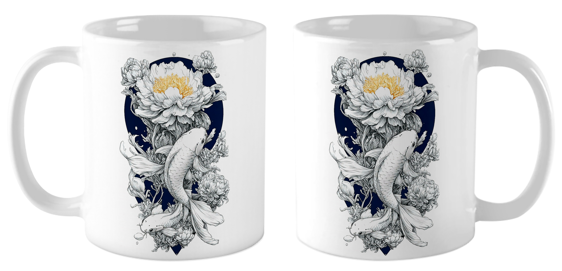 Кружка «Кои» — это стильный аксессуар для вашего стола! Изготовленная из качественной белой керамики, она украшена изображением карпов кои. Удобная классическая форма и гладкая поверхность обеспечивают комфортное использование, а стойкость печати гарантирует сохранение четкого рисунка после многократного мытья. Практичный вариант для ежедневных напитков.