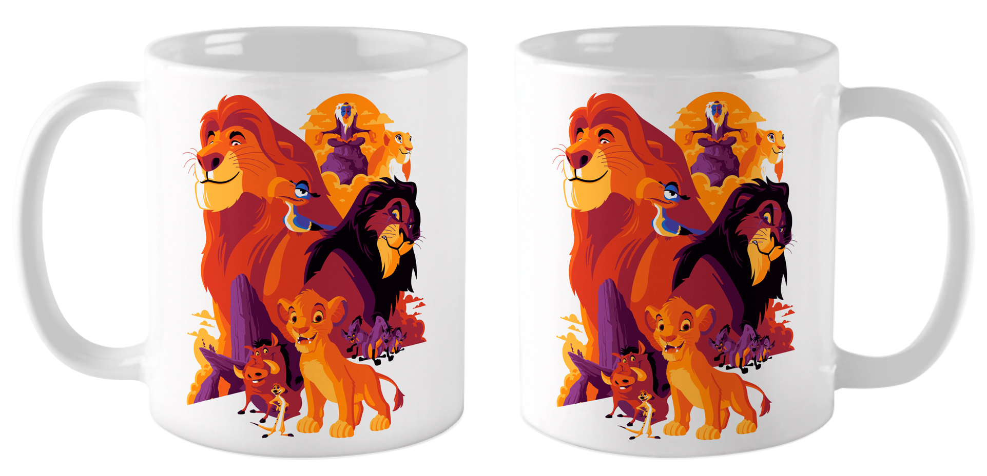 Кружка с рисунком из «The Lion King». Этому мультфильму студии «Дисней» покорились сердца как взрослых, так и детей. Драматическая история о жизни львенка Симбы и его взрослении заслужила наивысшей оценки многих критиков и навсегда вошла в историю анимации. Герой ждет множество опасных приключений, которые в итоге приведут к его предназначению – стать главой прайда.
