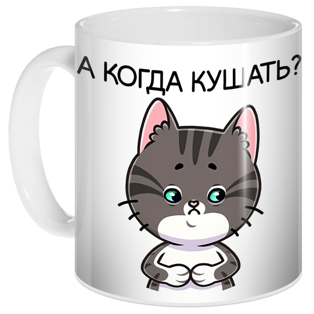 Просыпаясь утром и видя на своей кружке веселого котика с надписью "А когда кушать?", вы сразу почувствуете прилив хорошего настроения. Эта яркая и оригинальная кружка станет отличным подарком для любителей кошек и чая. Изготовлена из качественной керамики, удобно держать в руке и легко моется. Подарите себе или близкому человеку порцию радости и уюта с кружкой "А когда кушать?".