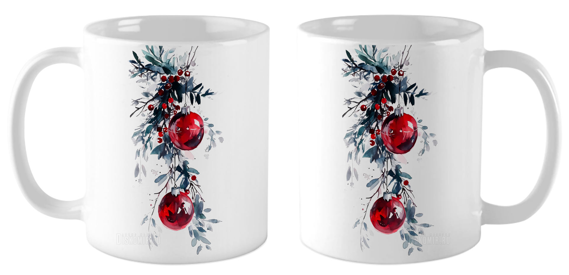 Кружка Красные шары на ветке / Акварель