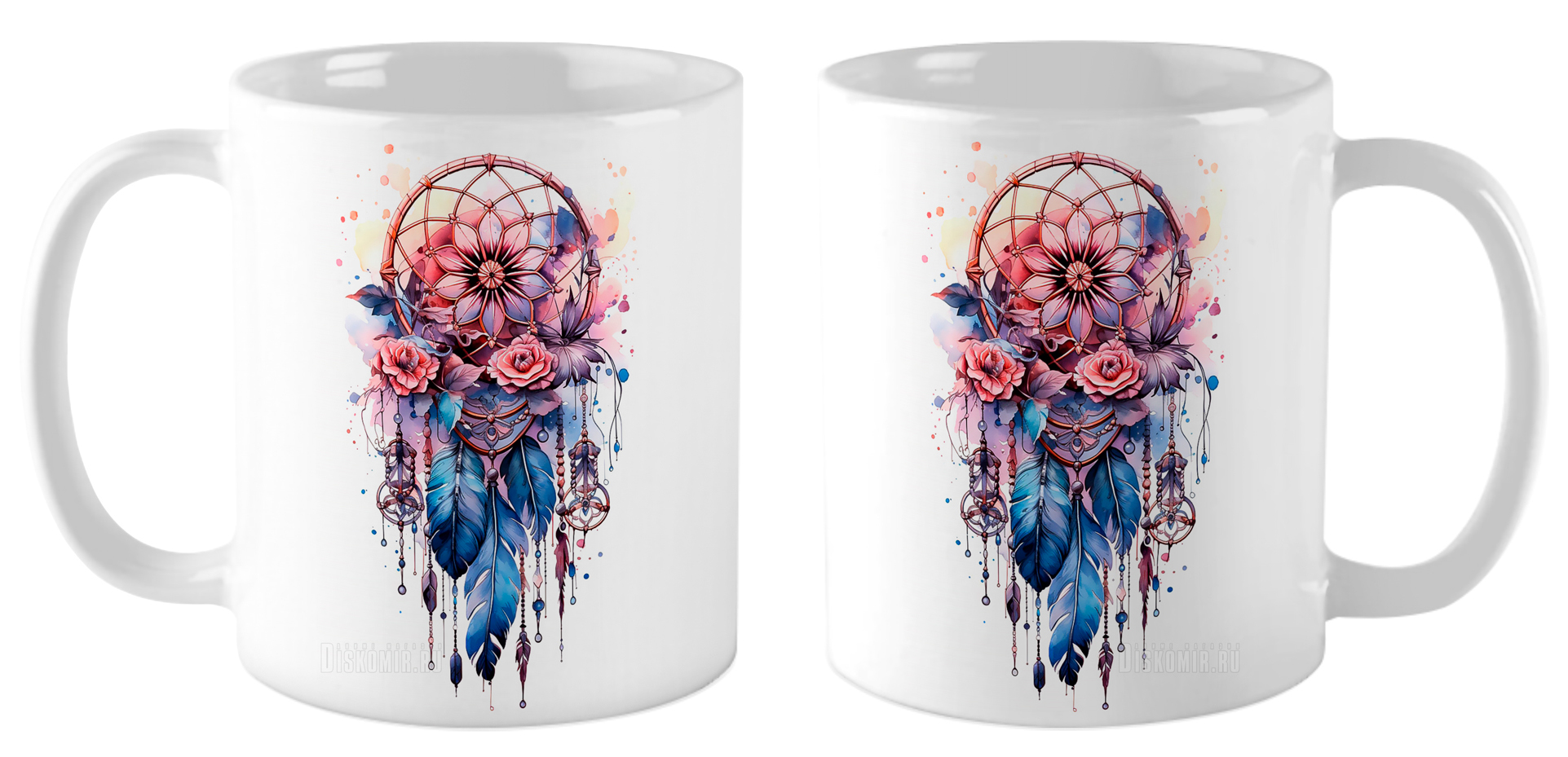 Кружка Ловец снов с цветами / Акварель