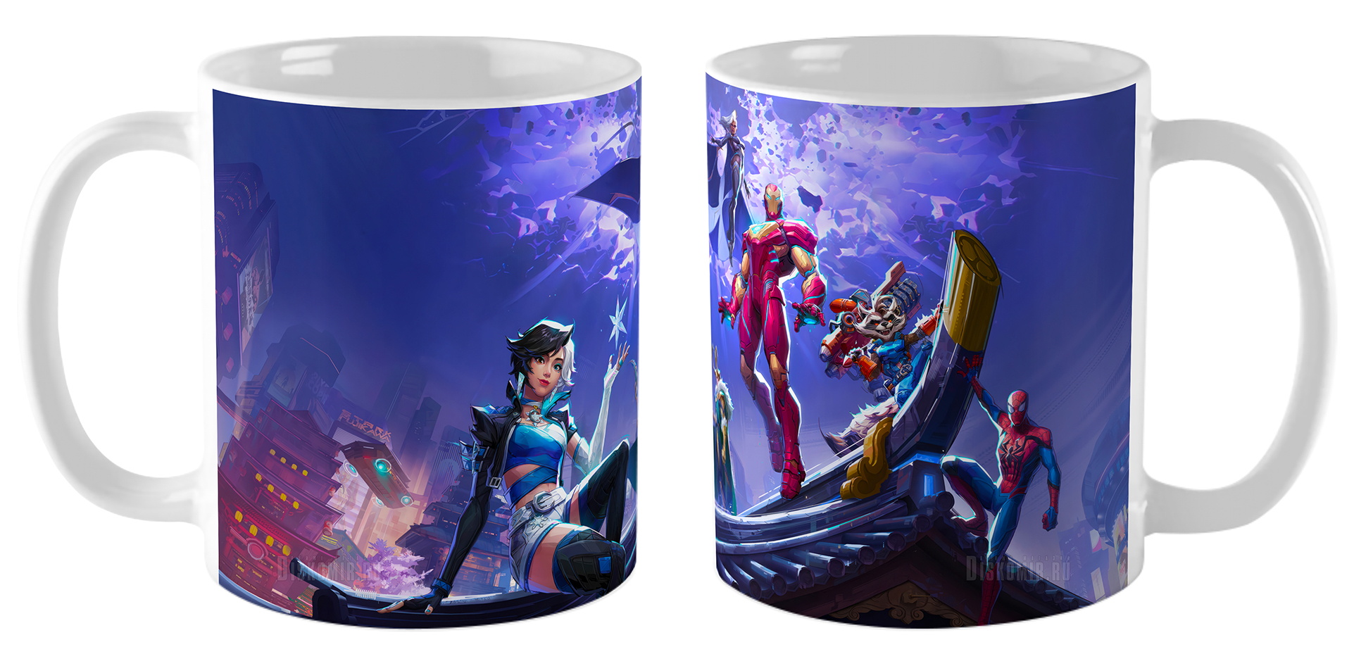 Кружка с героями студии «Marvel». На ней разместились самые известные из них, не раз появлявшиеся в хитовых блокбастерах. Среди них Железный человек, Человек-паук, герои «Великолепной четверки», «Людей Икс» и многие другие. Все они стали невероятно популярными как герои комиксов и одноименных фильмов, неустанно штурмующих кинотеатры мира.