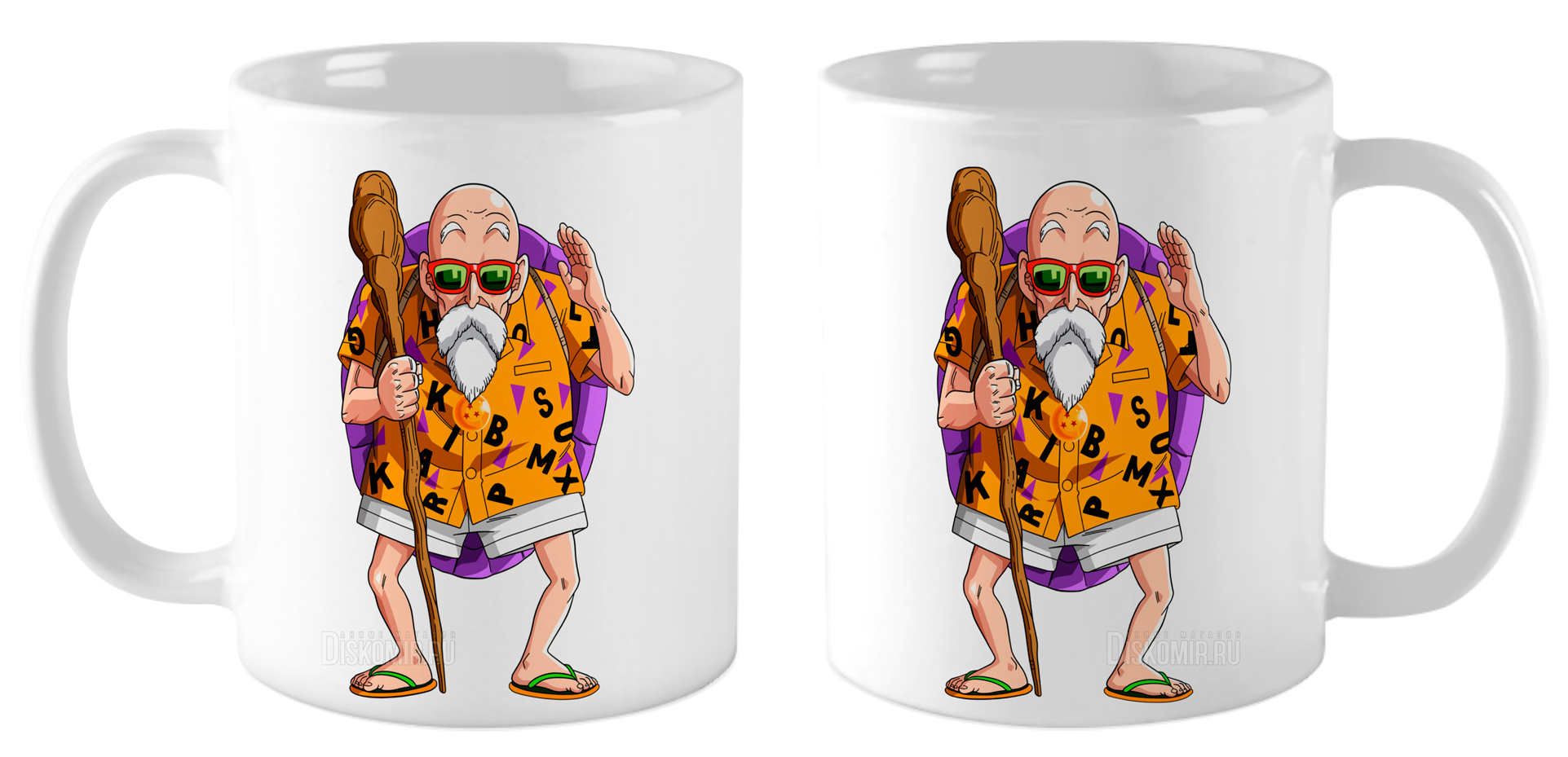 Керамическая кружка белого цвета объёмом 330 мл с изображением Мастера Роши из аниме «Dragon Ball» станет прекрасным дополнением к вашему интерьеру или отличным подарком для любителей этого мультфильма. Она выполнена из высококачественной керамики, поэтому отличается прочностью и долговечностью. Благодаря своему стильному дизайну и удобной форме кружка станет незаменимым атрибутом вашей кухни или офиса.