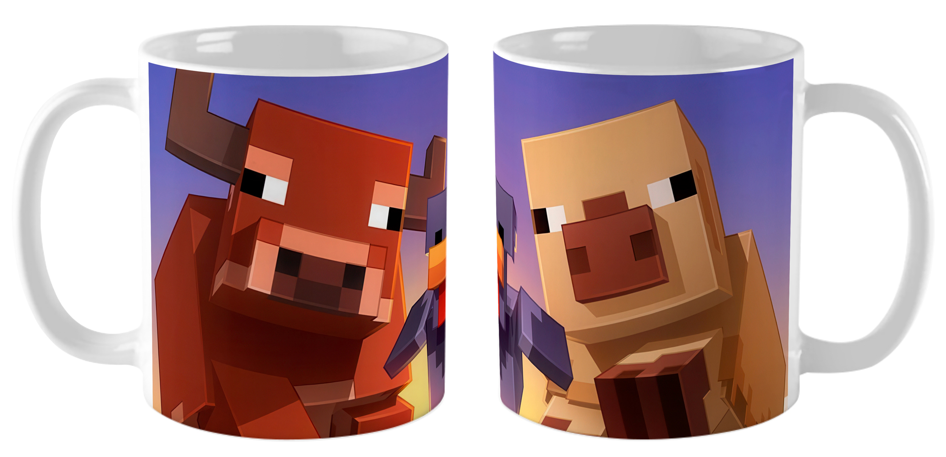 Кружка «Майнкрафт» — это галерея пиксельной фауны! Изготовленная из качественной белой керамики, она украшена композицией из узнаваемых игровых животных: от пчёл, кружащих над ульями, до лис, крадущихся в тайге. Удобная классическая форма и гладкая поверхность обеспечивают комфортное использование, а стойкость печати сохраняет живость сцен и характер каждого моба после многократного мытья. Умилительный аксессуар, напоминающий о гармонии между игроком и природой в кубической вселенной.