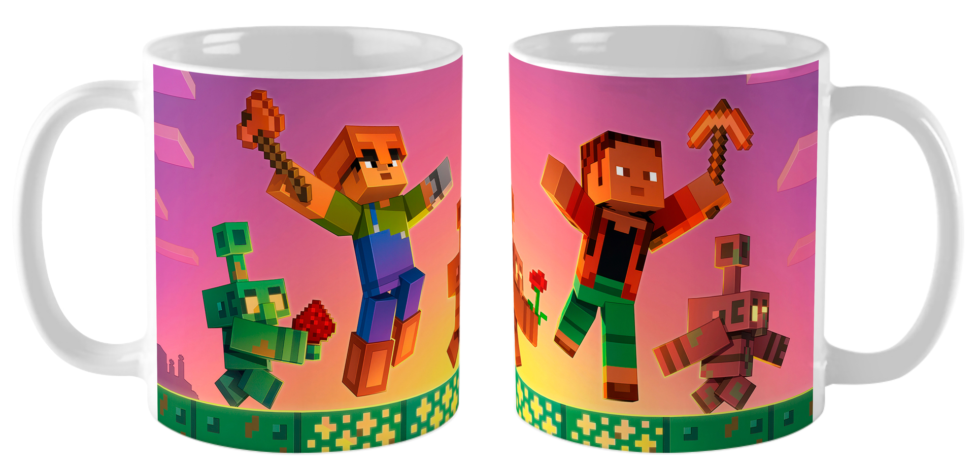 Кружка «Майнкрафт / Minecraft Live» — это визуальный карнавал любимых персонажей! Изготовленная из качественной белой керамики, она украшена композицией из героев игры, запечатлённых в характерных пиксельных образах. Удобная классическая форма и гладкая поверхность обеспечивают комфортное использование, а стойкость печати сохраняет детализацию каждого персонажа после многократного мытья. Настоящий фанатский артефакт для повседневных ритуалов.