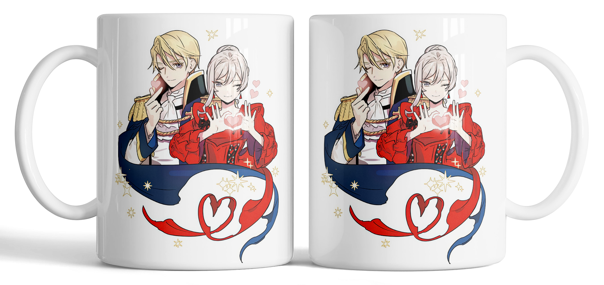 Керамическая кружка по мотивам аниме Могу я попросить ещё кое-что? с изображением Скарлет эль Вандимион и другого персонажа. Нежная композиция с декоративными элементами и мягкой цветовой палитрой создаёт романтичное и стильное настроение. Качественная печать делает кружку отличным подарком для поклонников аниме.