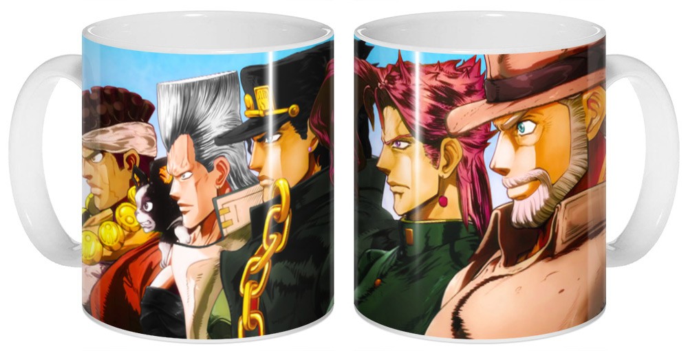 Керамическая кружка Джотаро и Джоскэ из аниме JoJo's Bizarre Adventure - универсальный подарок, который можно преподнести на любое событие. Каждая наша кружка заряжена позитивом. Стойкий и яркий рисунок не стирается со временем и кружка прослужит вам долгое время, принося радость и хорошее настроение